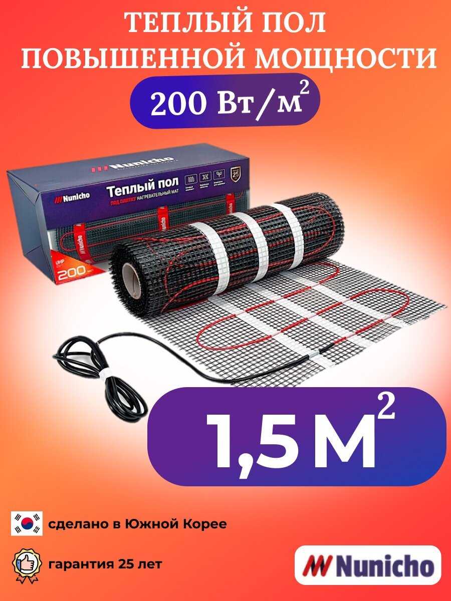 | Теплый пол электрический под плитку 1,5 м2 Nunicho 200 Вт/м2 с терморегулятором сенсорным серебристым, нагревательный мат | Яндекс Маркет | 9 448 ₽