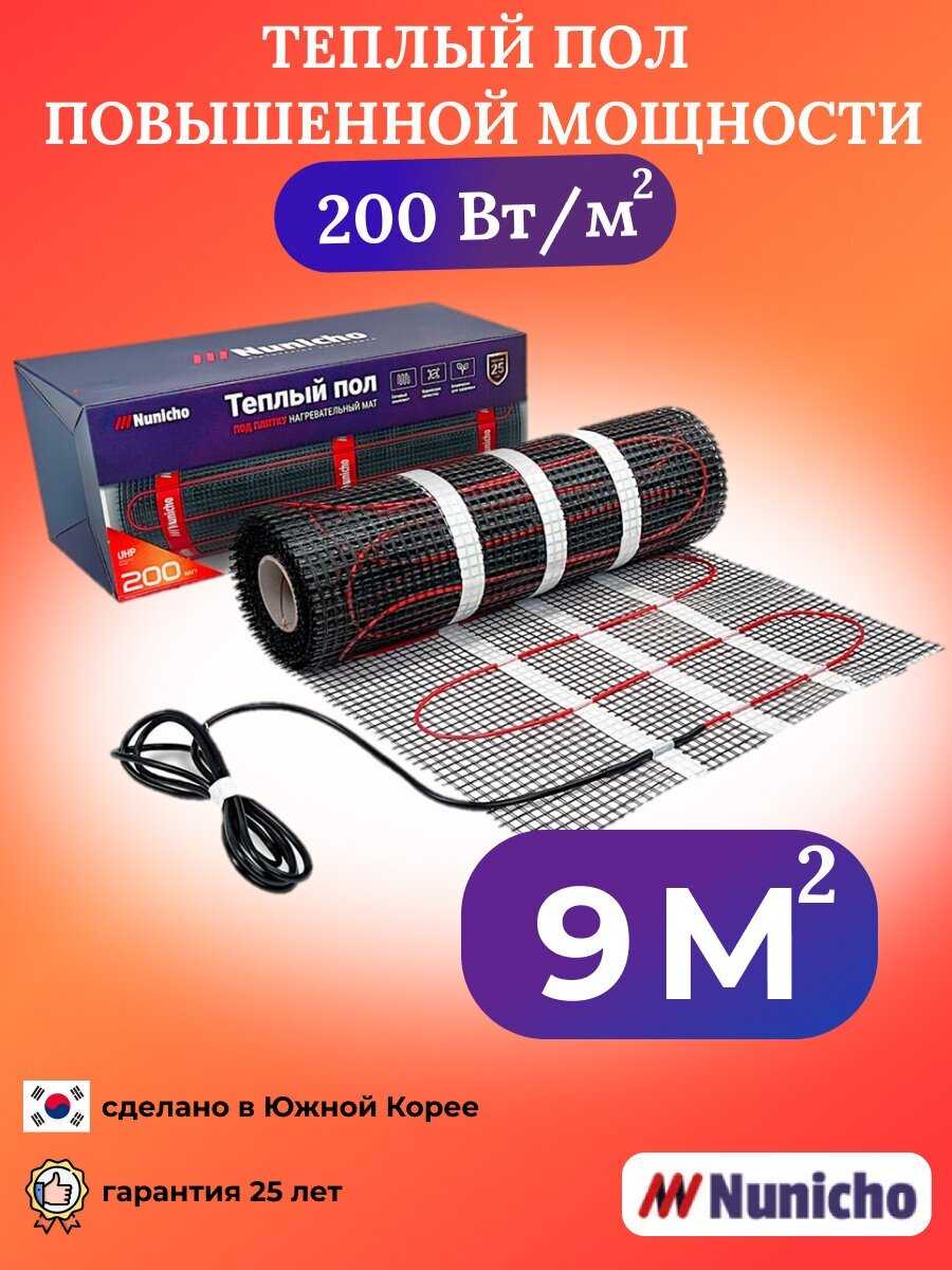 | Теплый пол электрический под плитку 9 м2 Nunicho 200 Вт/м2 с терморегулятором сенсорным серебристым, нагревательный мат | Яндекс Маркет | 25 515 ₽