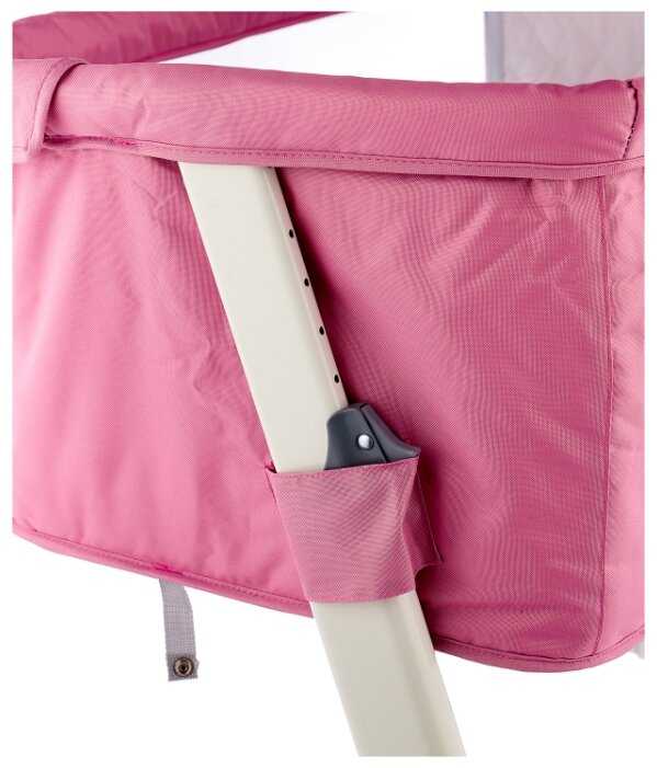 - + Просторная, глубокая, и качество обивки хорошее, ткань приятная на ощупь, ребенку комфортно. Передний бортик просвещается, ребенка видно отлично если использовать колыбель как отдельно стоящую. При использовании в прикроватном варианте по высоте с кроватью сровнять не проблема и от кровати колыбель не отходит, фиксируется хорошо.