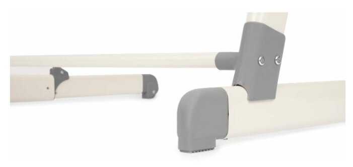 - Широкие ножки из толстого профиля обеспечивают стабильность, кроватка не шатается даже при движении.