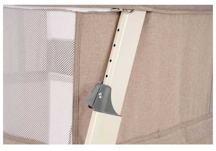 - + Простая, но крепкая и качественная прикроватная колыбель с 6 уровнями высоты