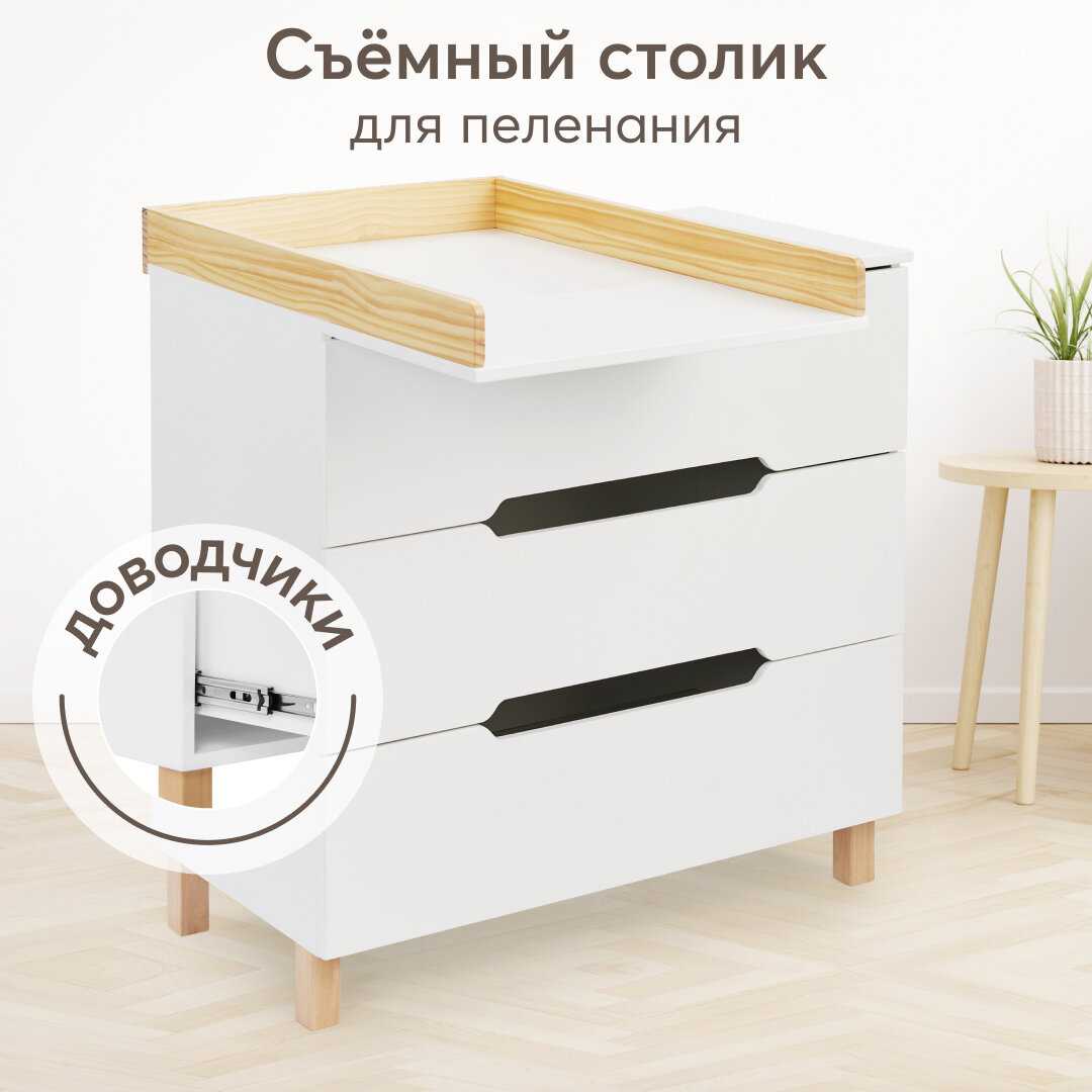 - + Бесшумное закрытие ящиков, хорошее качество, съемный пеленальный столик.