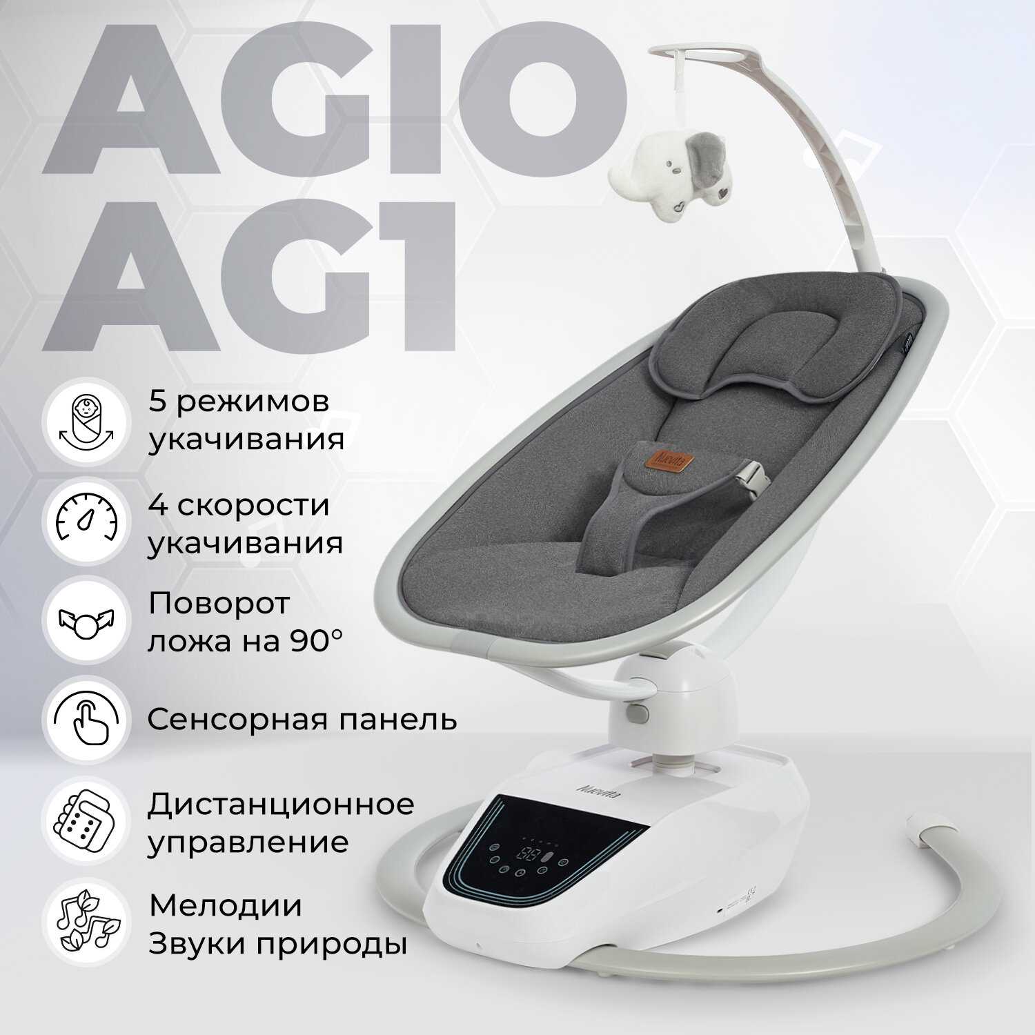 Дополнительная информация : | Из других преимуществ электронной качели для новорожденных Agio AG1 — возможность регулировки наклона сиденья: от 103° (с углом наклона спинки в 120°) до 113° (с углом наклона спинки в 130°). Электрокачель-шезлонг рассчитана на новорожденных младенцев в возрасте от 0 до 6 месяцев, а значит, эта характеристика имеет для них принципиальное значение: в период, когда мышцы и связки малыша слабы и несовершенны, физиологически правильное положение тела особенно важно. Обеспечить его также помогает удобная подуона позволяет ровно уложить головку во избежание различных деформаций шейного отдела позвоночника. |