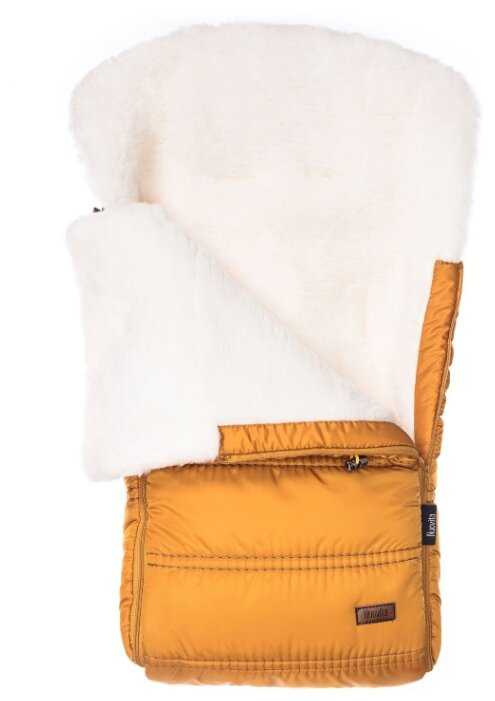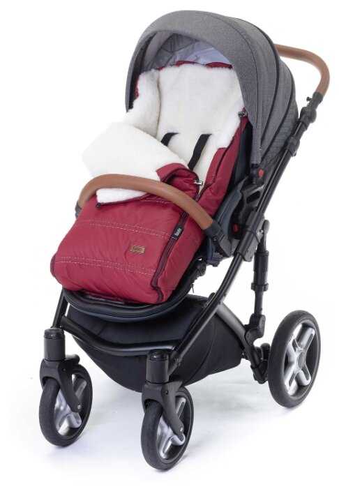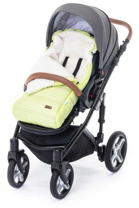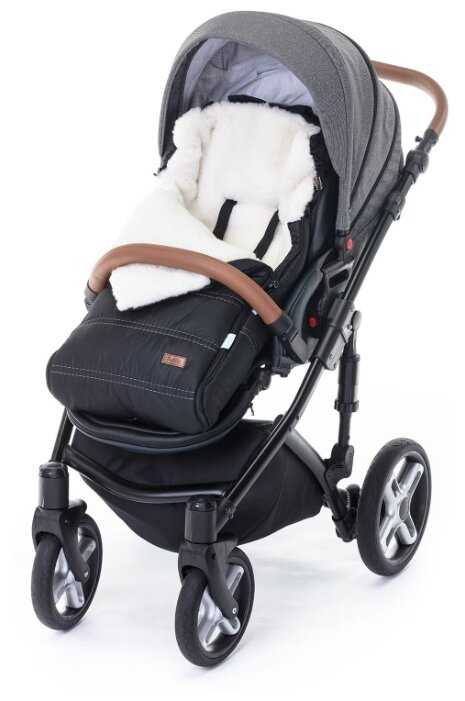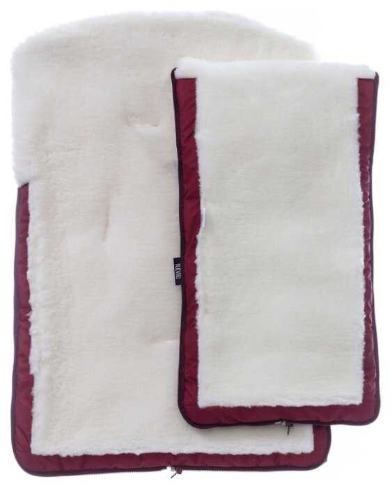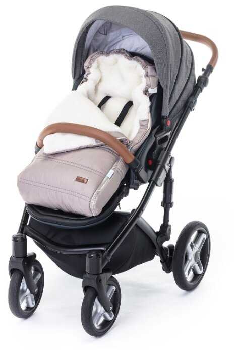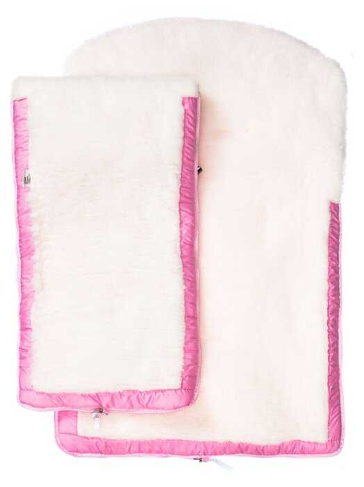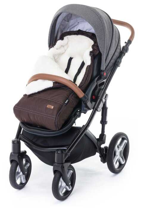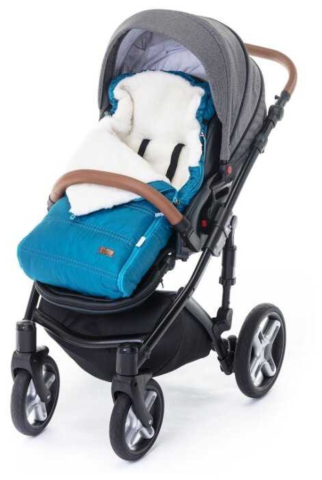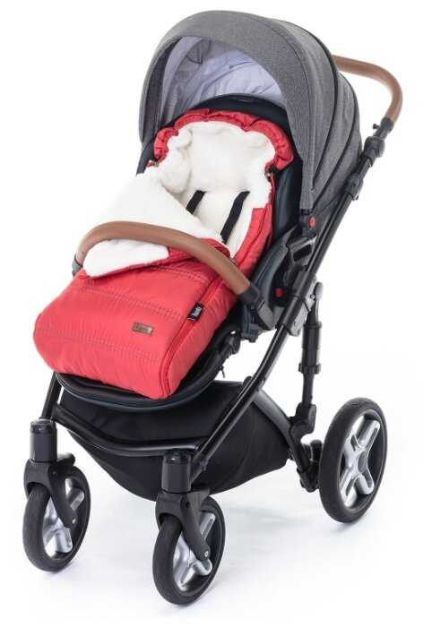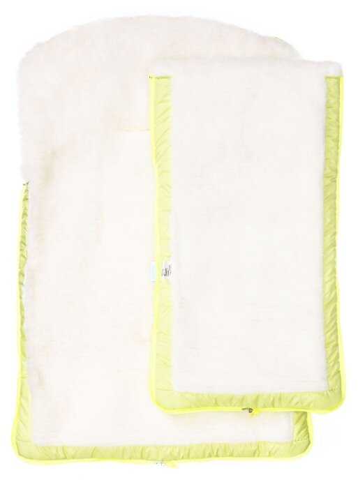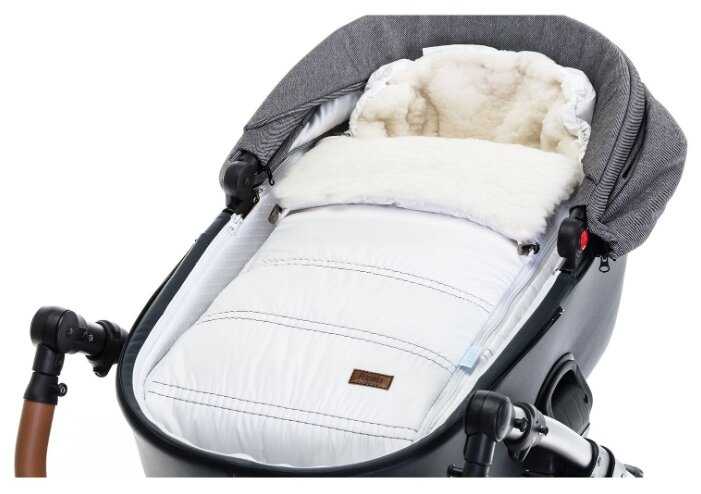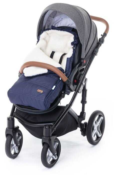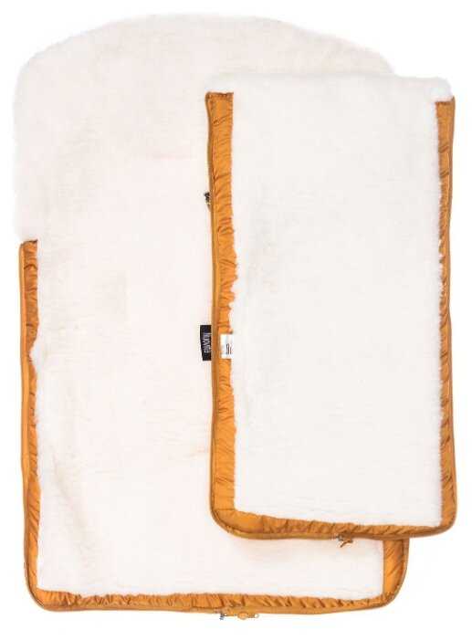 - + Очень теплый конверт на овечьей шерсти. Верх из водонепромокаемой плащевки. Есть много цветов на выбор, я взяла оранжевый, классно смотрится.