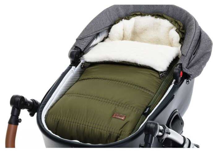 - + Приятный на ощупь и очень теплый конверт. При этом в нем и не жарко, материалы дышат, что тоже очень важно.