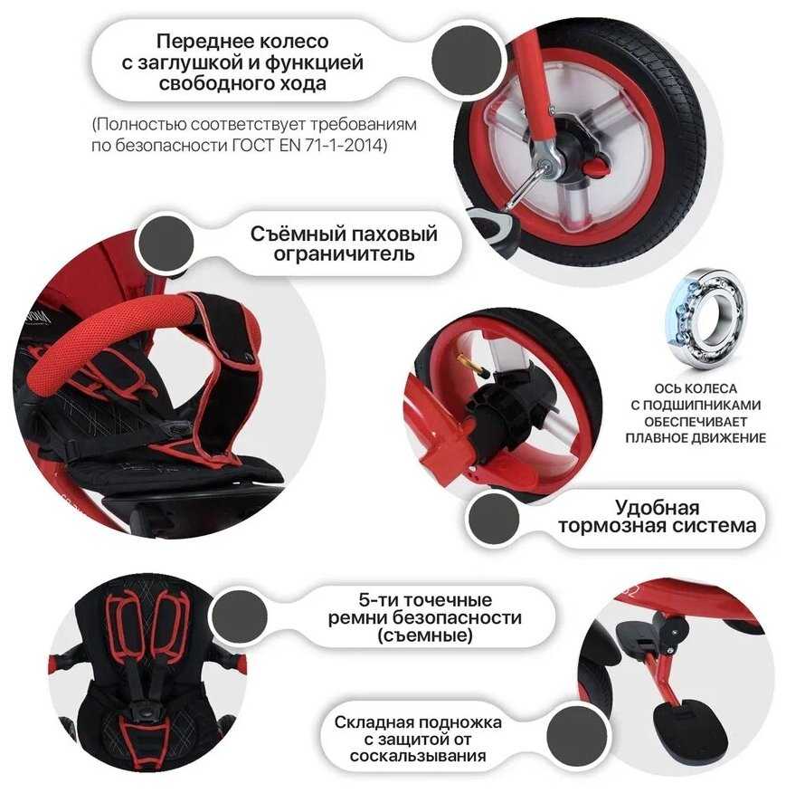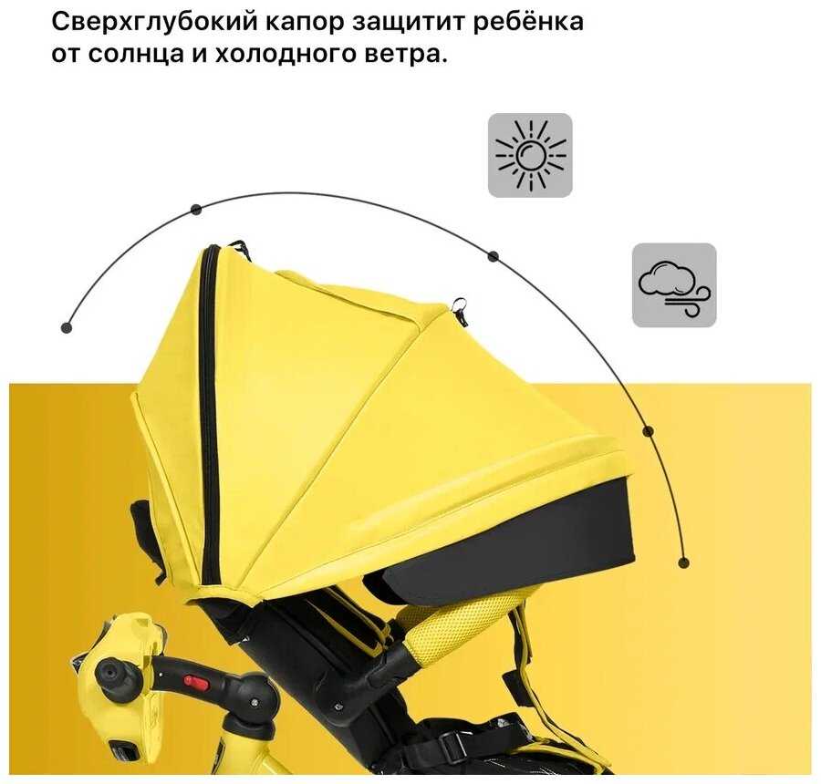 - + Хорошие большие резиновые колеса. Большой капор с двумя отсеками-сетками. Капор регулируется не только по складыванию, но и по наклону. т.е. его можно настроить как тебе удобно. Удобная родительская ручка. Два места для хранения. Три положения педали. Для малыша, среднего и взрослого. Всё качественное. Возможность подключения по блютусу музыки!! Это вообще восторг. У нас музыкальный ребёнок, и он с большим удовольствием ехал под музыку