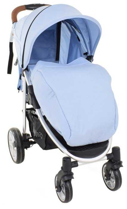 Минусы: колеса твёрдые как пластмасса, передние колеса стучат при езде по неровностям; ход не лёгкий, нужно приложить усилие чтобы она ехала (когда ребёнок лежит, сидя - норм); положение лёжа действительно странное - голова ниже ног; чехол на ножки держится на клёпках, которые тяжело прикрепить и снять, с трудом (в скором времени скорее всего отвалятся); очень много щелей, куда будет задувать ветер (на фото видно, что накидка на ножки с щелями по бокам). Спальное место короче чем в описании, ребёнок 66 см, лежит от макушки почти до пяточек. Самый большой минус - в сложенном виде громоздкая, не стоит сама, ложится на бампер, который ребёнок трогает ручками (пачкается). Чтобы разложить, нужно подлезть снизу к ручке. Тонкая промокаемая ткань. Глухой дождевик. А так всё норм)) за свою цену