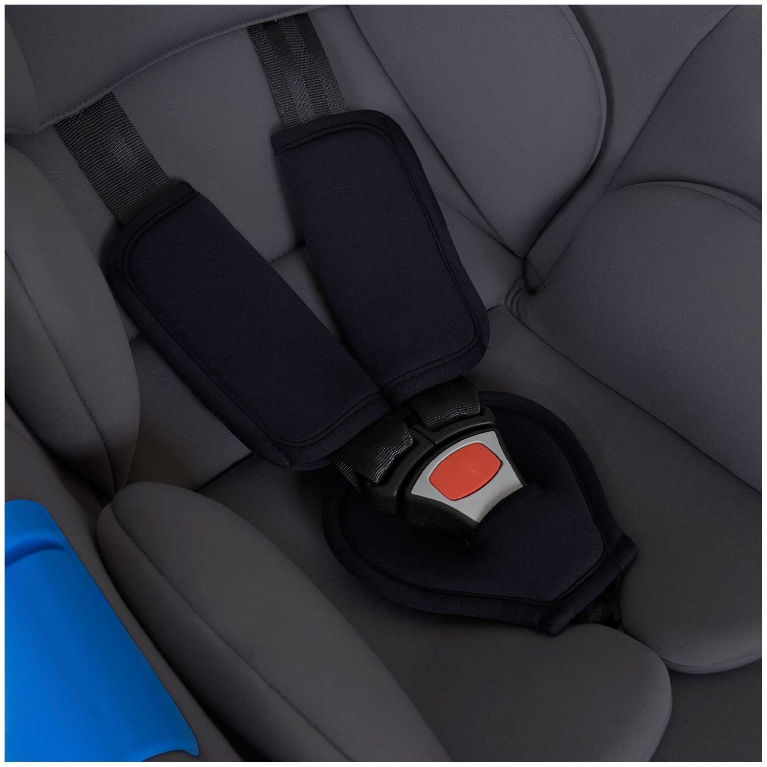 Толстенькое кресло, поддерживается шейный отдел и головка, конструкция литая, как раз для самых маленьких деток. Пробовали ездить уже в верхней одежде, места хватает, ремни не пережимают. Бока кстати тоже прикрыты, еще один плюс в пользу безопасности кресла.