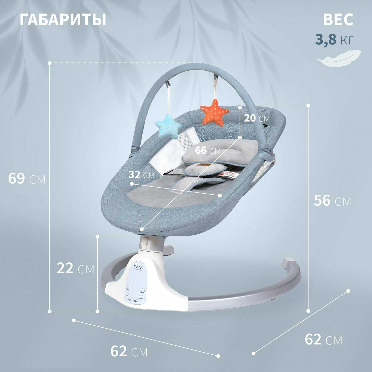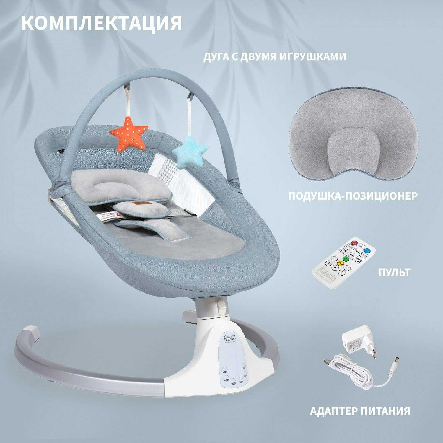 Комплектация : | дополнительная подушка под голову, дуга с 2-мя игрушками, пульт ДУ, адаптер питания |