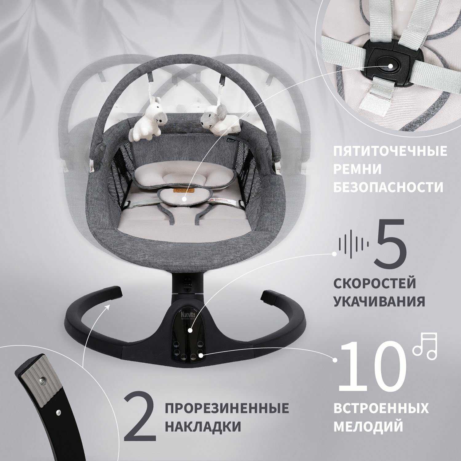 - + аккуратно качает, есть 5 скоростей на выбор, ложе просторное, по бокам есть сетки для вентиляции