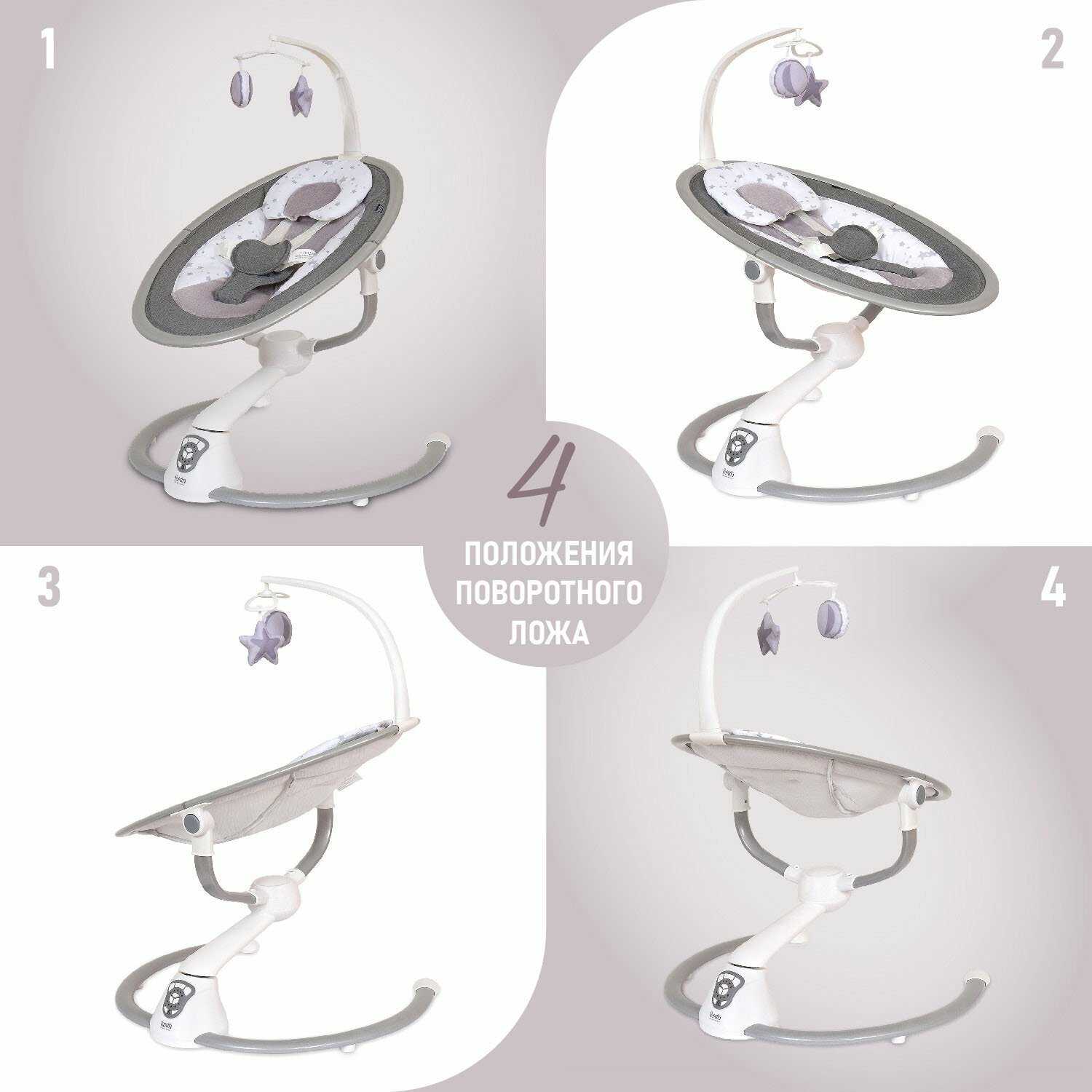 Дополнительная информация : | поворотное ложе на 360, функция «Умное укачивание», таймер на 15 30 60 мин, наклон сиденья: 2 (170° и 155°) |