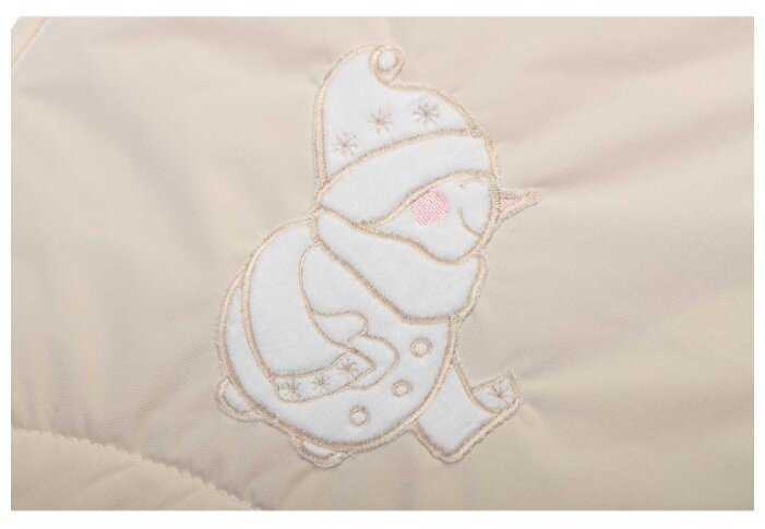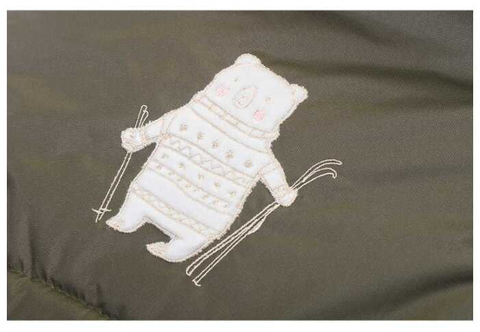 - + Удобный, расстегивается полностью, так что упаковать в него ребенка не проблема. Внутри приятный на ощупь, слой наполнителя хороший и распределен он равномерно без просветов. Плюс снаружи ткань классная, не продувается и воду...