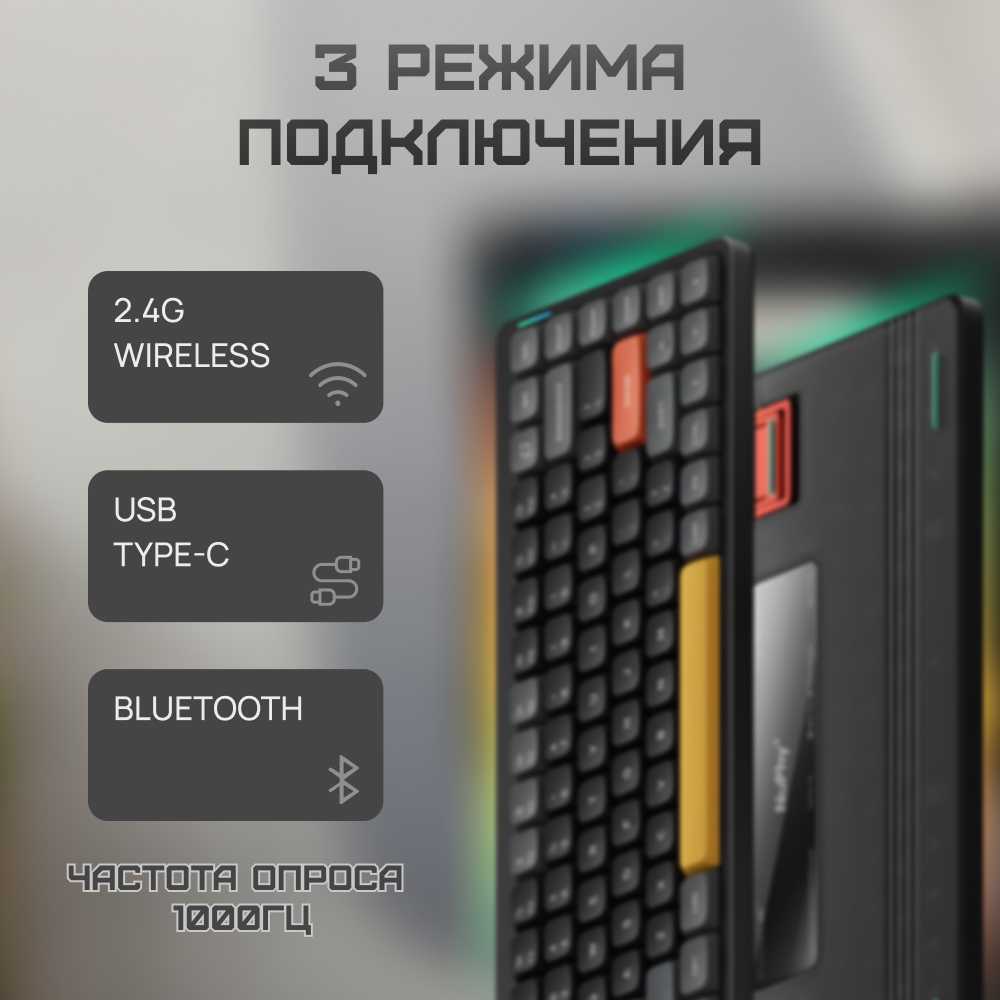 Добротно собранная клавиатура, приятный звук от сочетания PBT колпачков и синих тактильных свитчей. Очень хорошо чувствуется момент срабатывания клавиши. Приятный провод и свисток для 2.4 ГГц в комплекте.