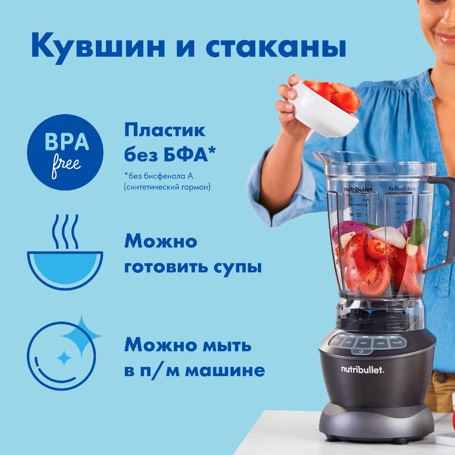 - + Реально мощный. Ножи добротные. Очень удобно что есть и большая чаша и стаканы. Это удачная покупка во всех отношениях.