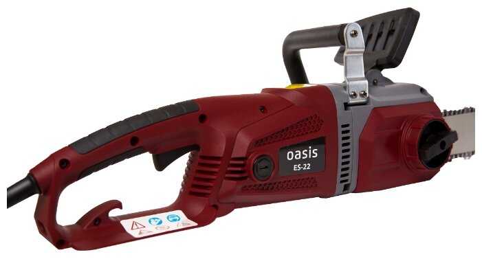 Особенности конструкции : | бесключевая замена оснастки, блокировка кнопки включения, регулировка натяжения цепи без инструмента |