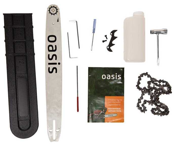 Комплект поставки : | бензиновая пила, направляющая шина, кожух шины, пильная цепь, емкость для смешивания, инструмент для сборки, руководство по эксплуатации с гарантийным талоном, коробка |
