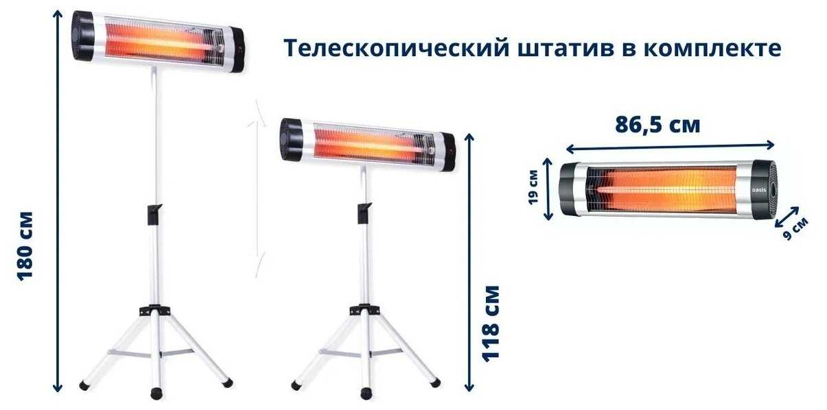 - + устойчивый штатив, хорошо прогревает в помещении на 19 квадратах