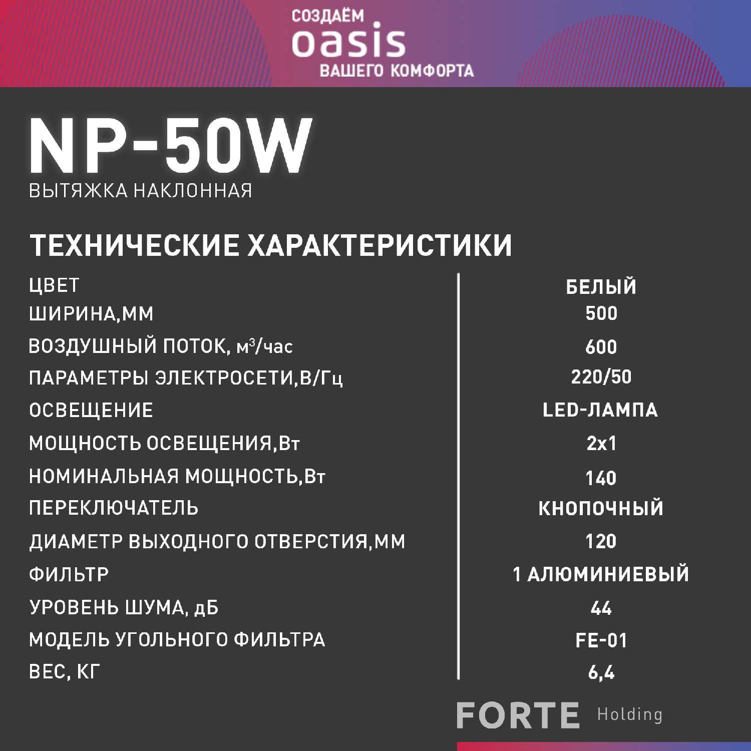 Характеристики OASIS NP-50W