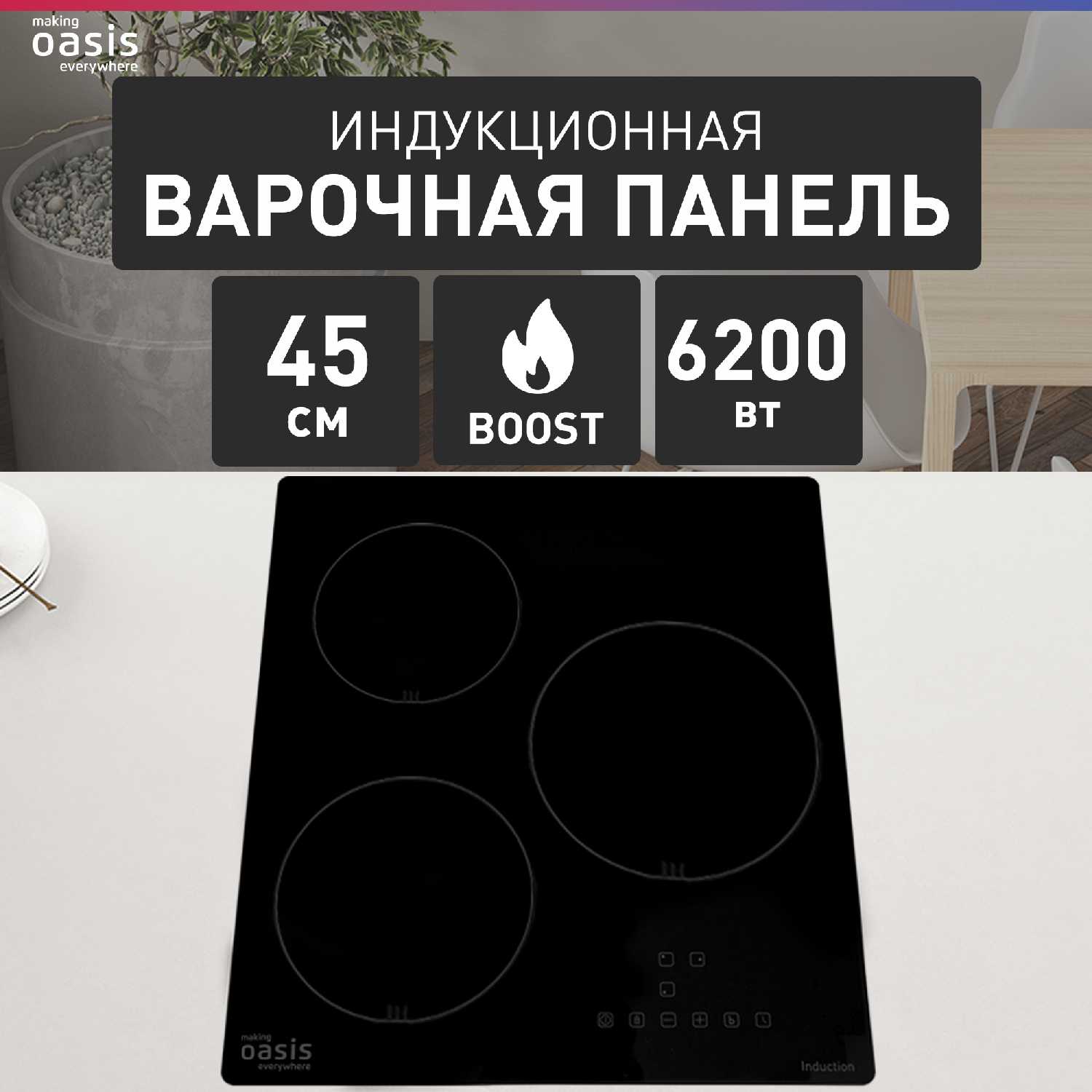 - конфорок индукционных: 3