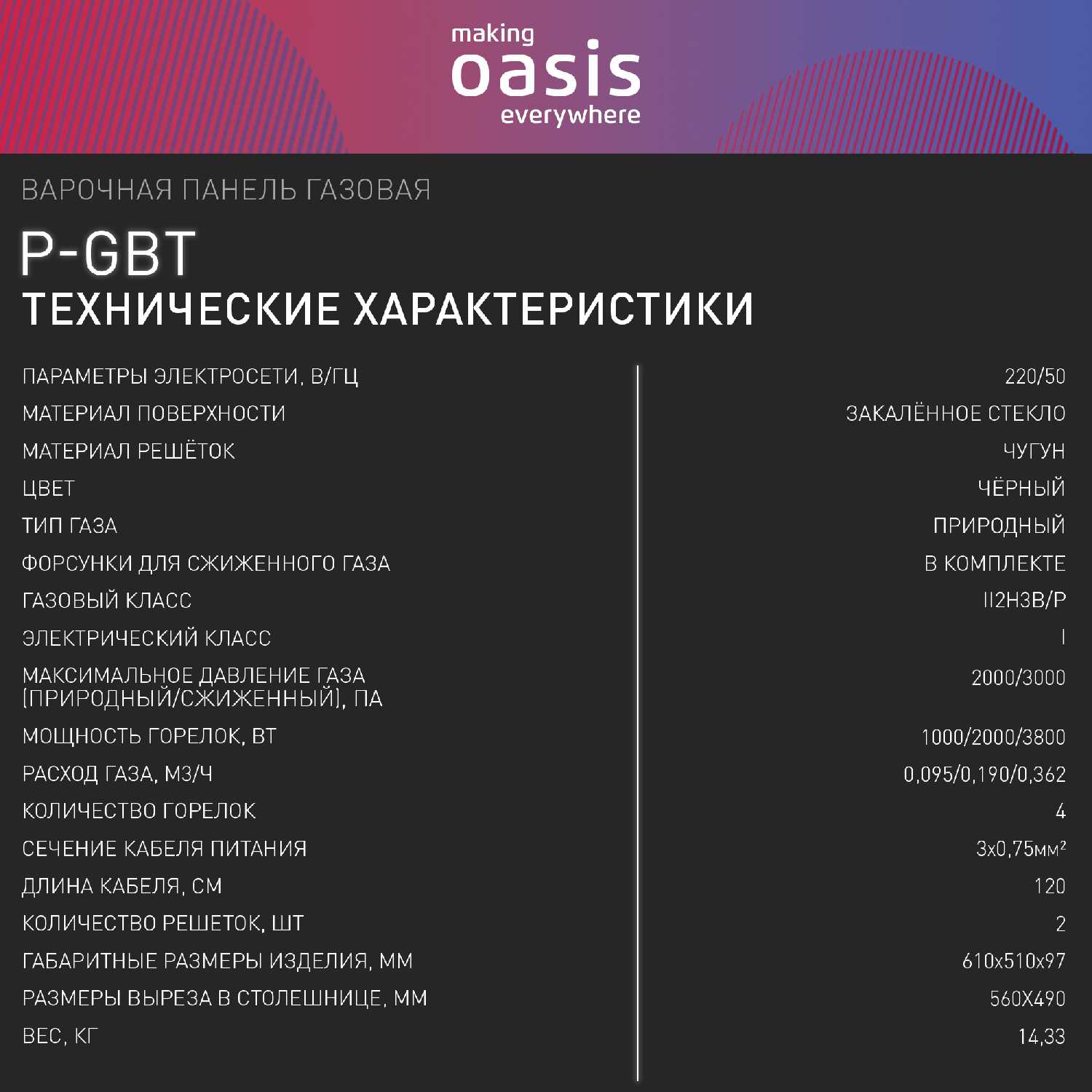 Отзывы о Газовая варочная панель Oasis P-GBT (F)