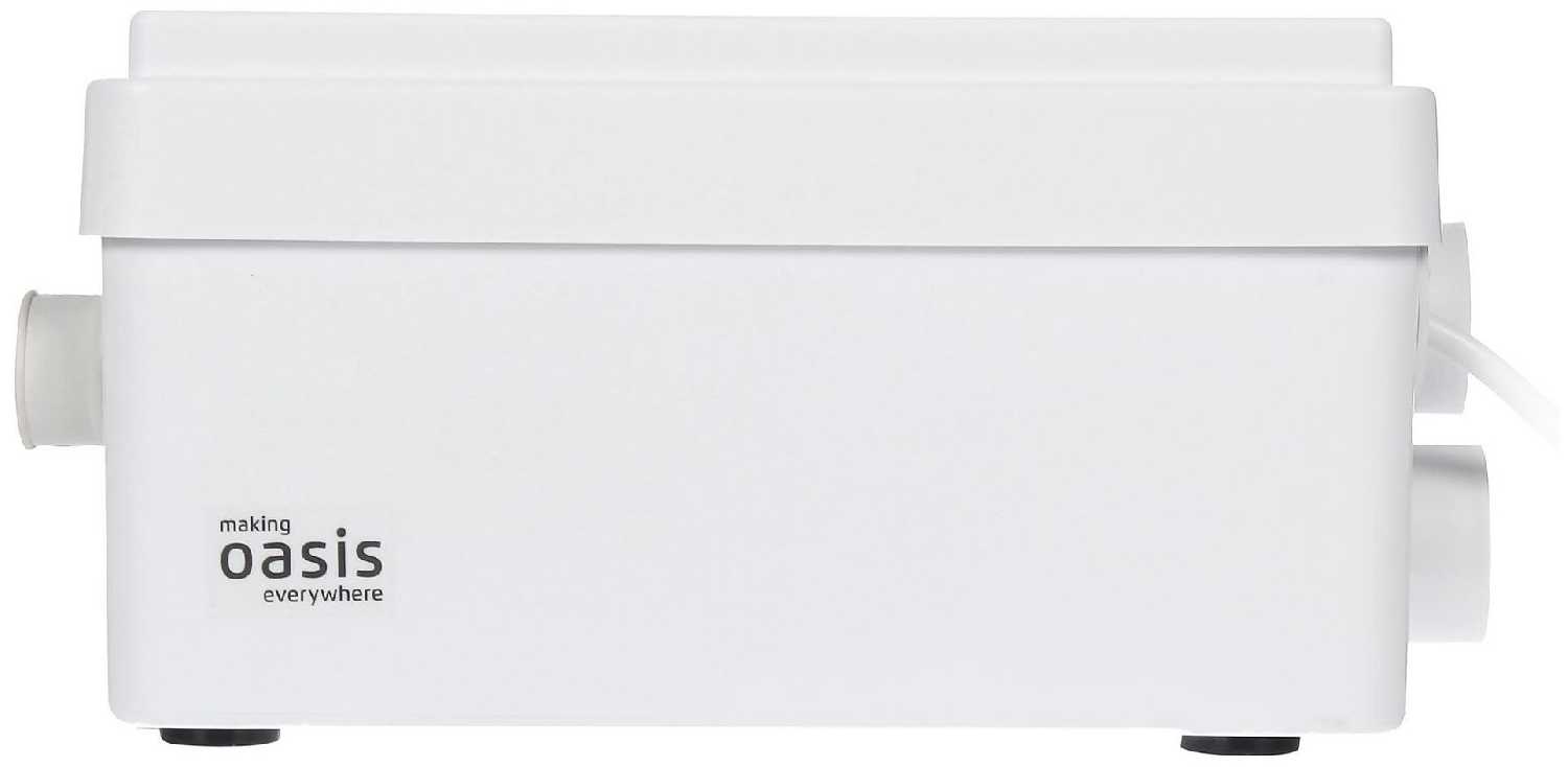 Насос очень компактный, объем приемника всего 3 литра, легко помещается под раковиной или в ванной. Пользователи хвалят малые размеры, позволяющие разместить его незаметно в тесных пространствах. Легкий вес также упрощает установку и перемещение. Подходит для мобильного использования в гостевом домике или даче. -