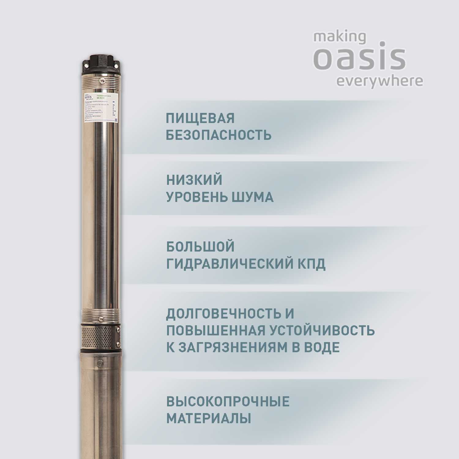 | Дополнительная информация : | максимальное содержание песка в воде не более 100 гр. в куб. м., степень защиты IP68 низкий уровень шума |