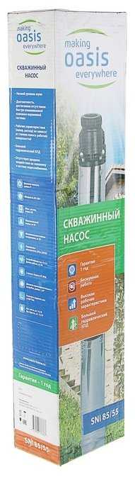 | Подробная комплектация : | Насос садовый скважинный Oasis SNI 85/55, высота подъема 55 м, кабель 30м, 5100 л/час |