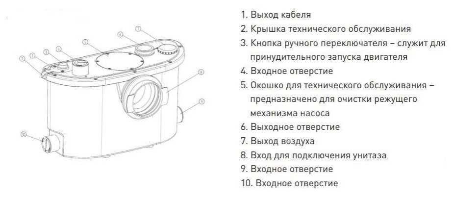 - Обратный клапан и измельчитель доступны для частичной чистки без полного демонтажа.
