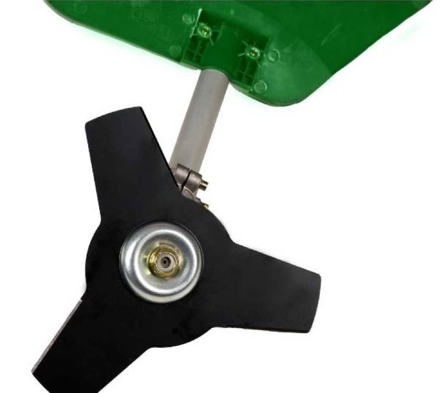 - Угол редуктора 90° сохраняет крутящий момент, позволяя резать стебли толщиной до 1 см без биения на скорости 8000-9000 об/мин.
