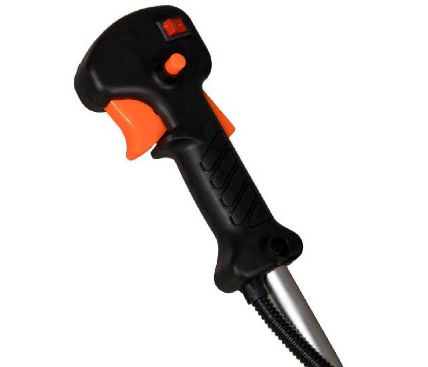 - Прямая форма правой рукоятки обеспечивает точный контроль оборотов, удобный для обкашивания возле гаража и клумб без повреждений.