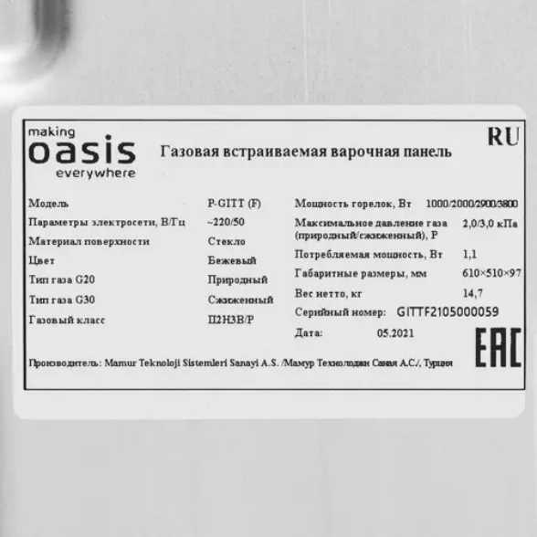 Обзоры и руководства на Oasis Варочная панель P-GITT (F)