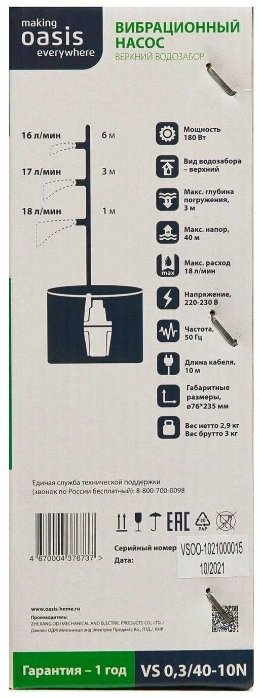 Подробная комплектация : | Насос в сборе, инструкция по эксплуатации |