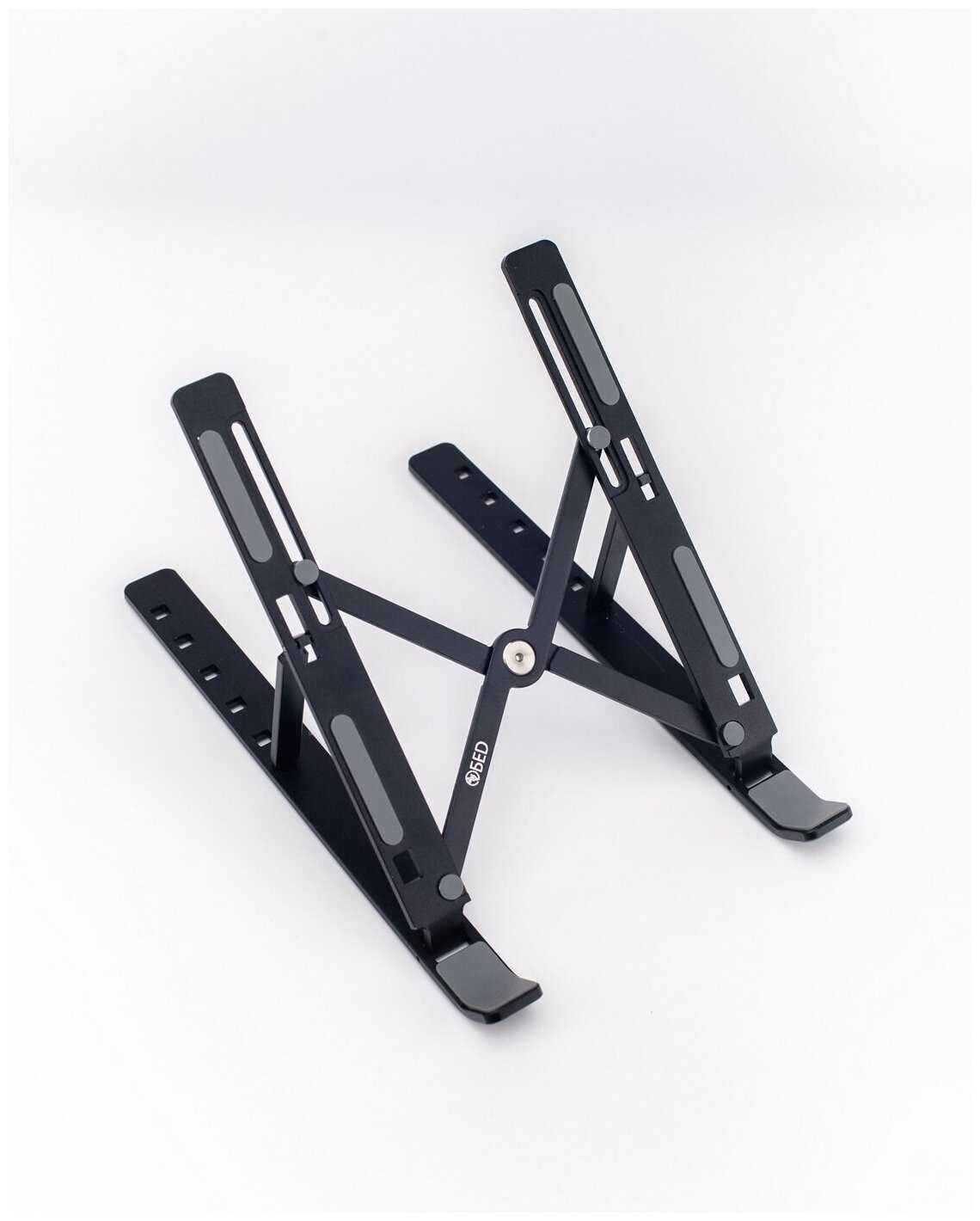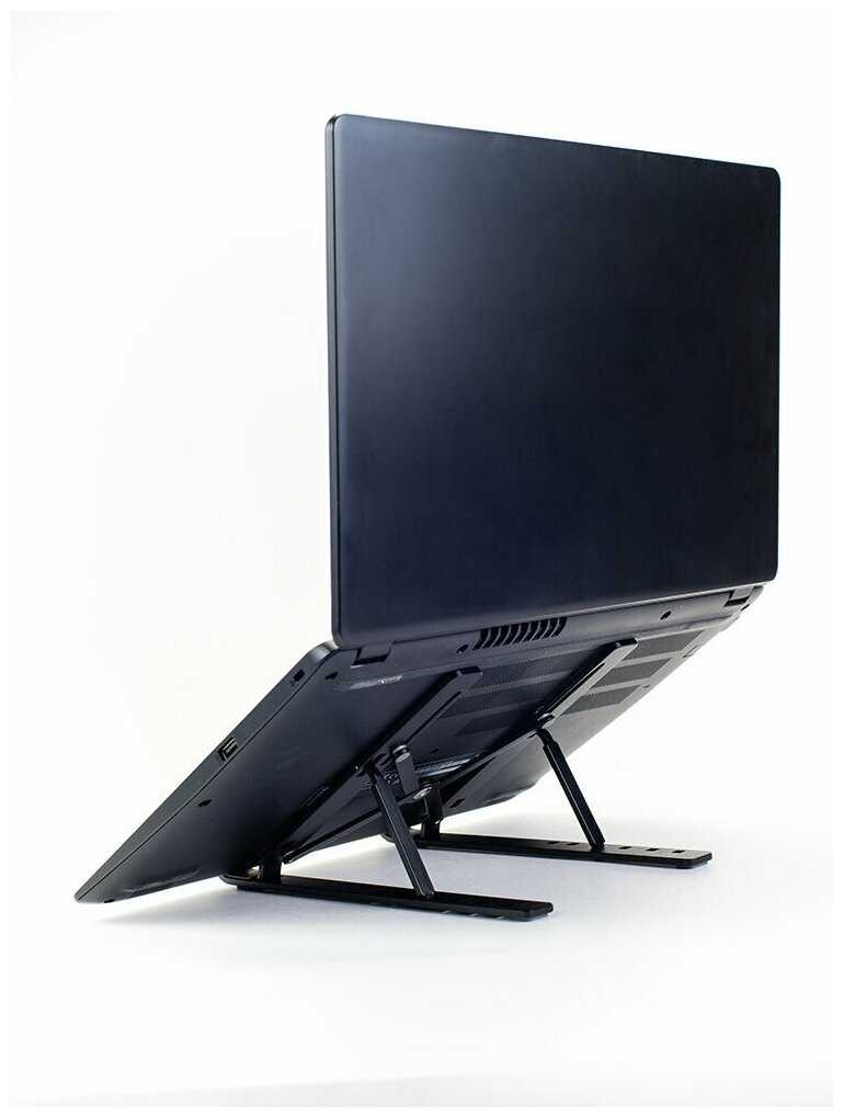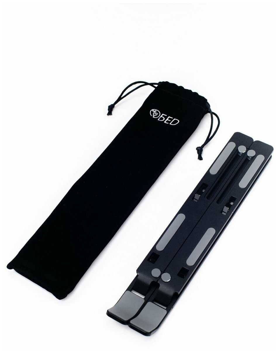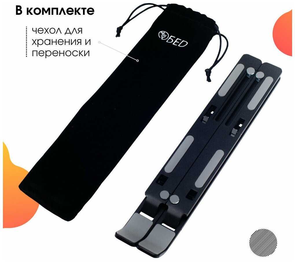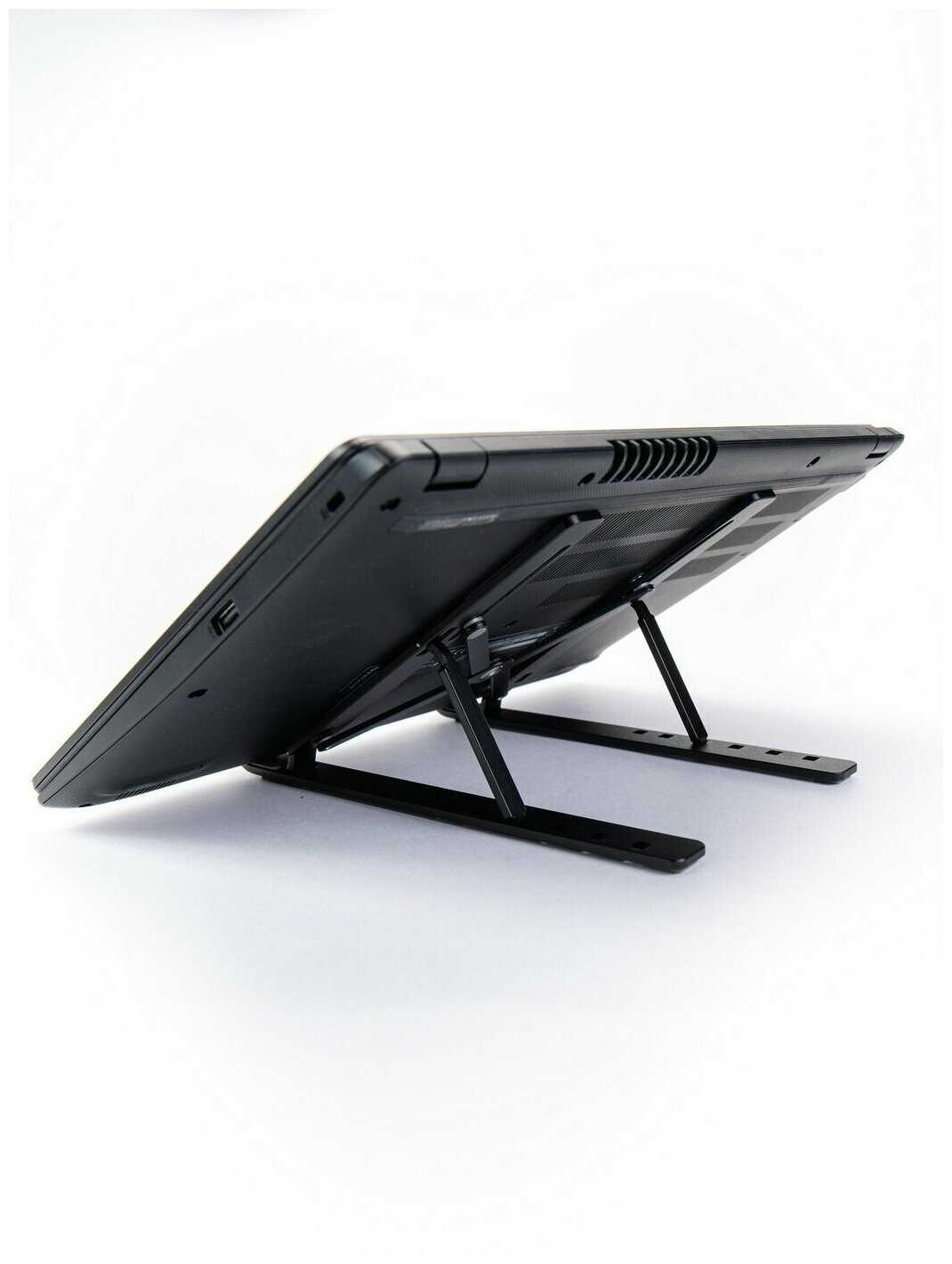 - + Подставка сделана из металла, ножки прорезинены, упоры для ноута тоже, 6 положений фиксации, ноутбук 17 дюймов стоит уверенно и не двигается при использовании, есть чехол для переноски.