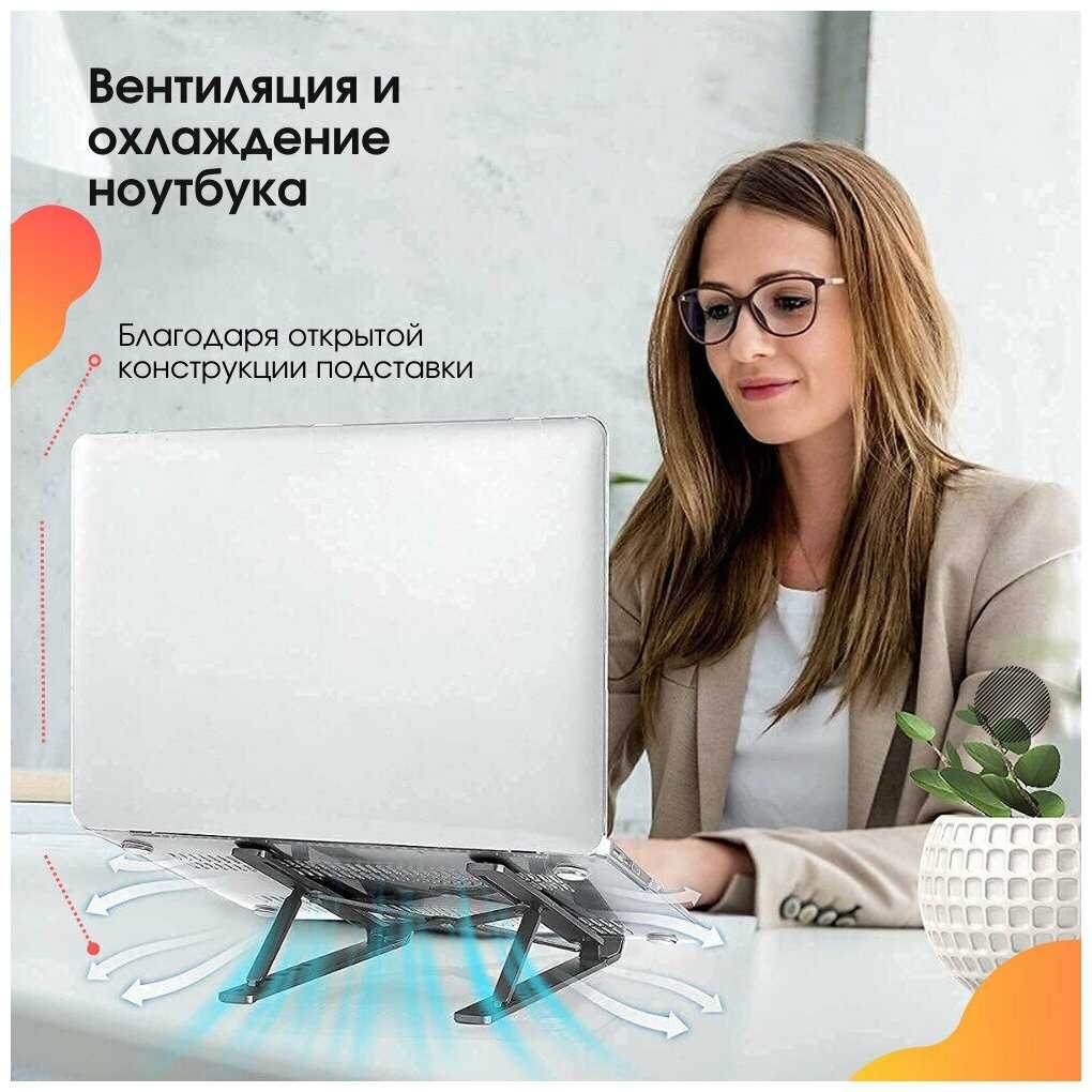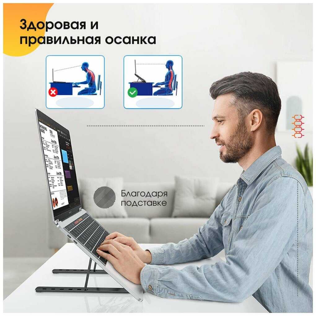 Во-первых, поднимает экран и поэтому удобнее сидеть за ноутбуком. Во-вторых, улучшает вентиляцию у ноутбука и он меньше греется и шумит. В-третьих, экономит место на...