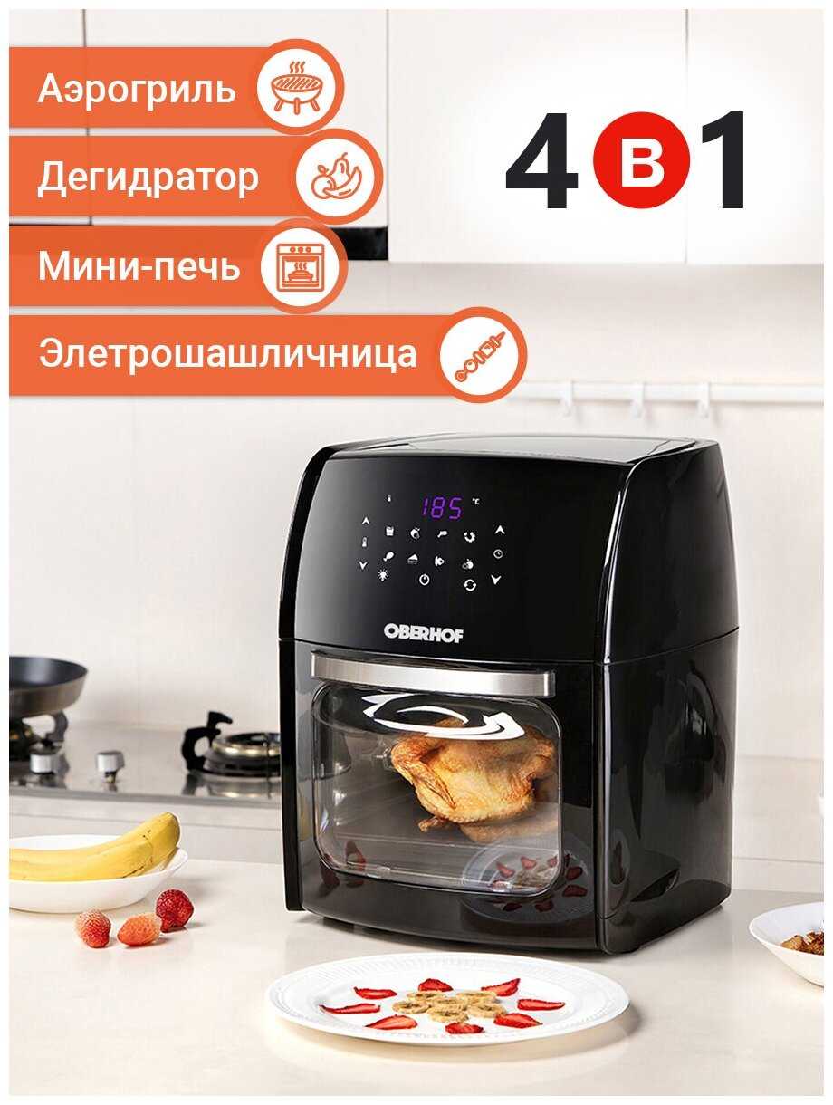 - Многофункциональность как аэрогриль, дегидратор и мини-печь: