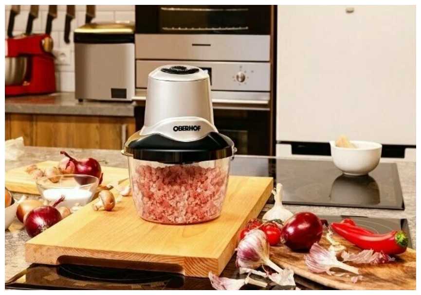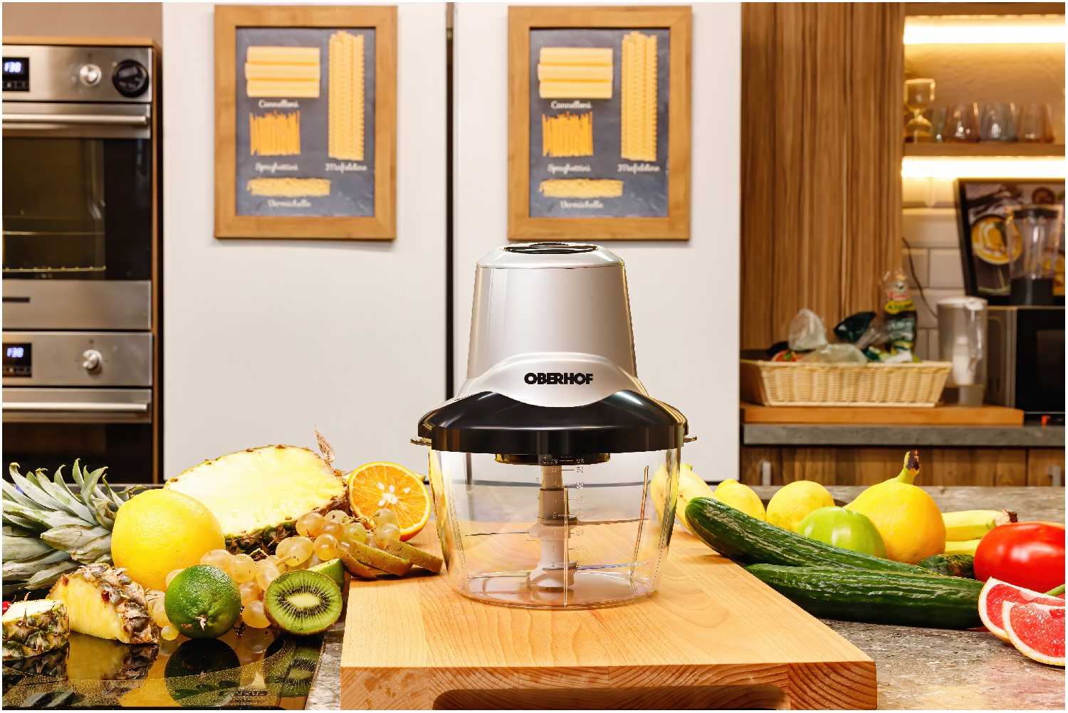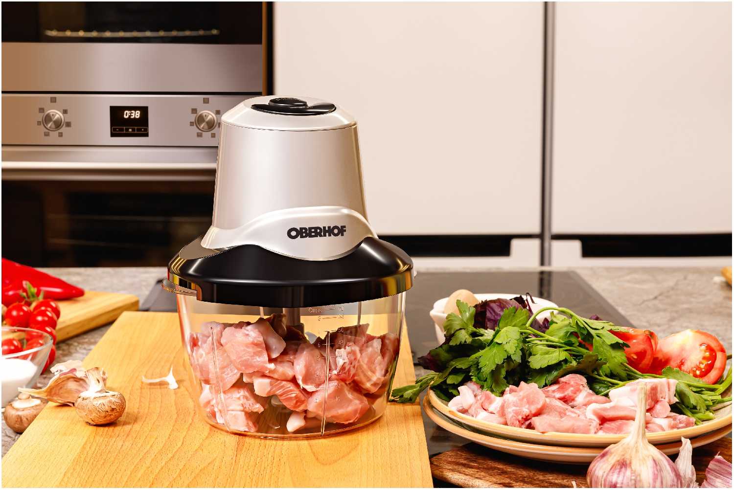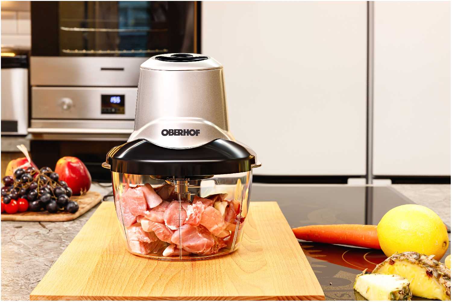 Очень советую, та как измельчитель Oberhof: не перегревается во время работы (и не загорается!); стальные ножи работают исправно; частички пищи не прилипают к деталям; рабочая чаша основательно прочная; справляется с крупными кусочками; вмещает несколько кухонных приборов – миксер, блендер, мясорубка; быстро измельчает для нужной консистенции; инструкция проста и понятна.