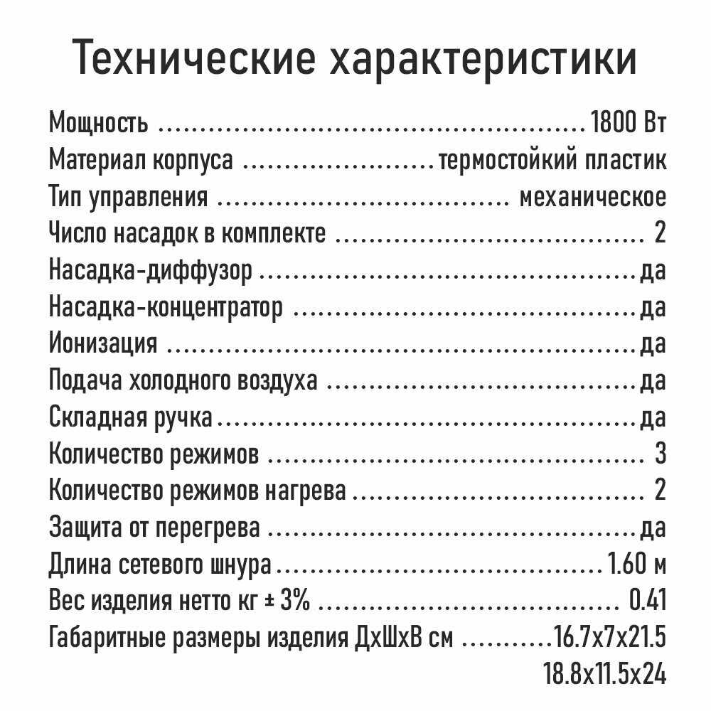 - + Приобрела фен из за насадки для локонов, пользовалась много раз все понравилось, много режимов в том числе холодный, фен работает