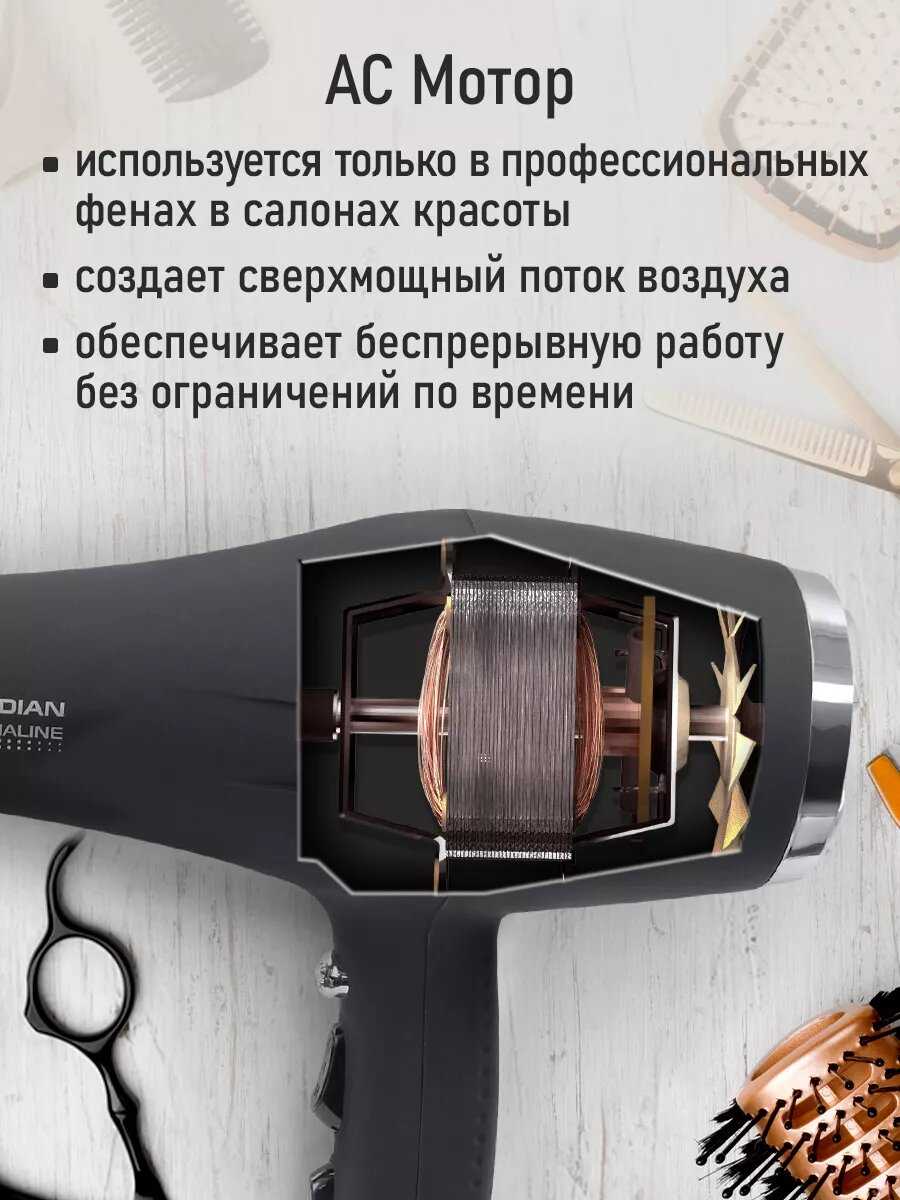 - Эффективность сушки подходит для длинных и кудрявых волос, минимизируя тепловое воздействие и улучшая общую производительность устройства.
