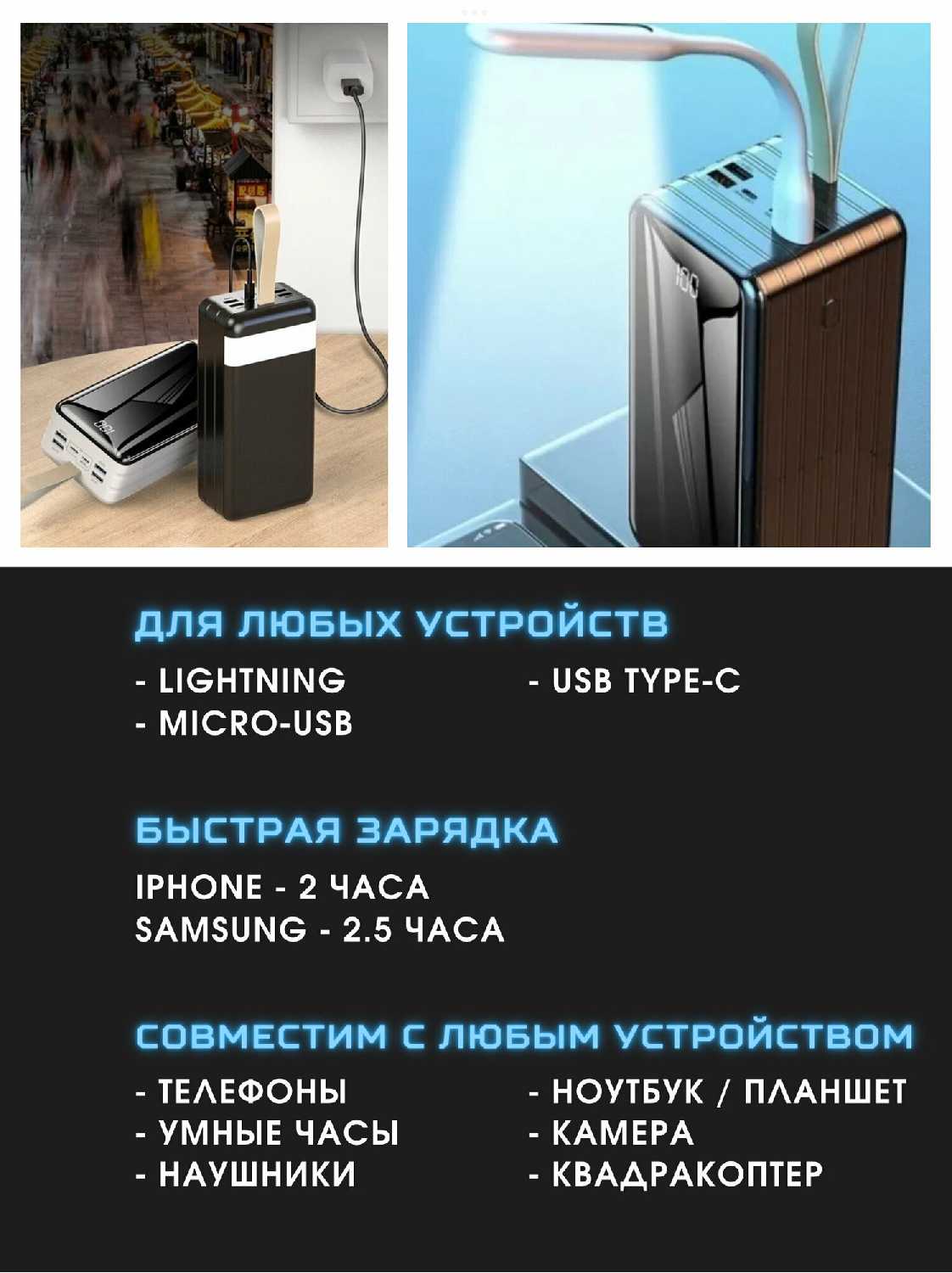 - + Заряжает 2 устройства