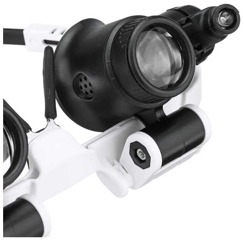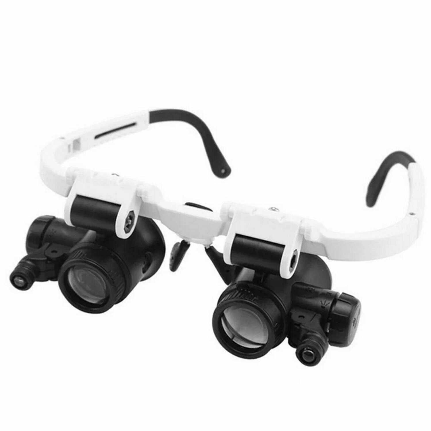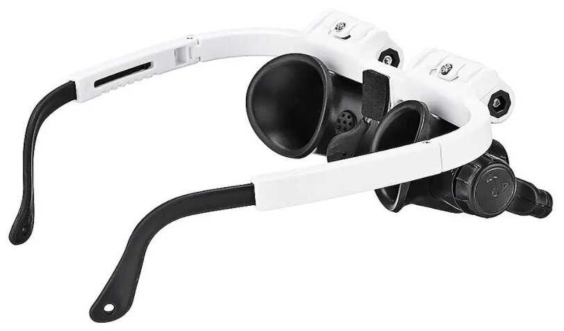 - + Очки-лупа "Орбита" бело-чëрного цвета из хорошего материала, линзы регулируюемые по высоте, двойные съëмные, с каждой стороны регулируемая подсветка.