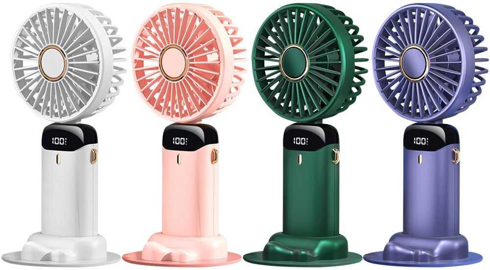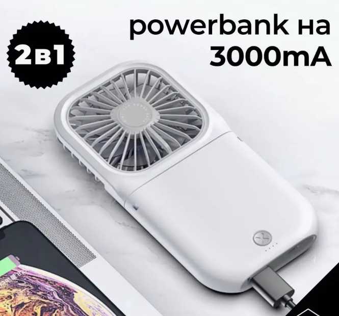 - + Вентилятор компактный, но свои функции выполняет на отлично! Имеется пять скоростей, при этом даже на первой скорости вентилятор охлаждает прилично. Удобный индикатор позволяет контролировать уровень зарядки и ступень скорости. В комплект входит подставка для вентилятора с пазом для мобильного телефона, телефон не выпадает из раза, по крайней мере у нас. В комплект также входят тканевый ремешок для ношения вентилятора на шее и таблетка ароматизатора воздуха. Зарядка требует 5 В, 1 А. Зарядное устройство не прилагается, но это не проблема. Покупкой довольны полностью!