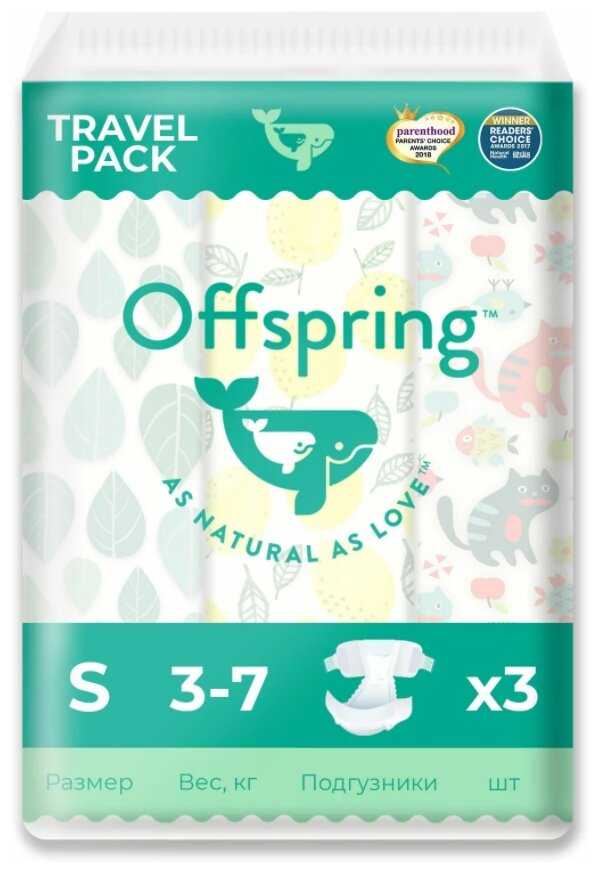 - + Offspring - это любовь уже со вторым ребёнком! Мягкие, красивые, масса принтов на выбор в каждом размере - на любой вкус! Впитывают отлично, никогда на них не было никакого раздражения у детей. А travel pack удобно брать не только на пробу, но и в сумку в коляску, чтоб всегда с собой были. Советую!