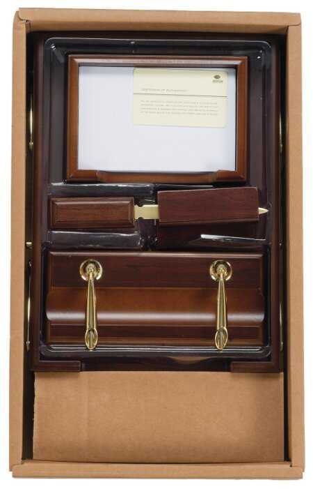 - Хороший набор, который впишется в любой офисный интерьер. Упаковано в 1 небольшую коробку. Подставку для визиток можно использовать как подставку для телефона