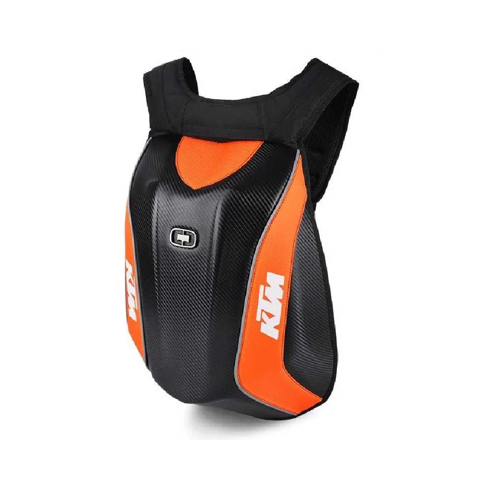 Функциональный,хорошо фиксируется,в процессе поездки не мешает,мотошлем не войдет