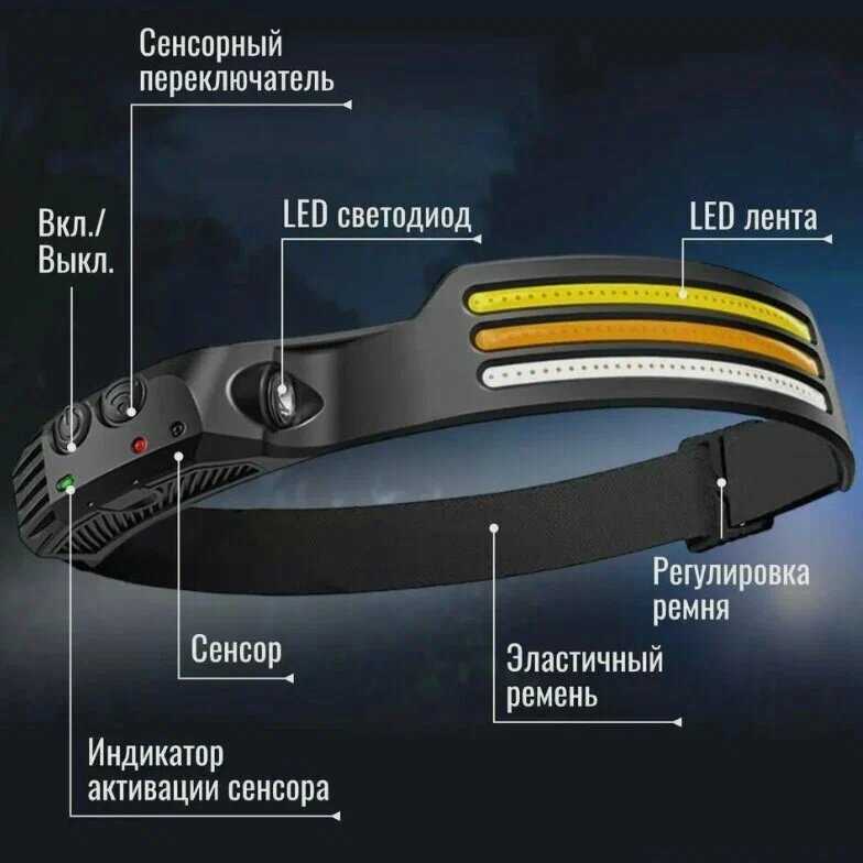 28 отзывов пользователей o Огонь Налобный светодиодный фонарь с датчиком движения
