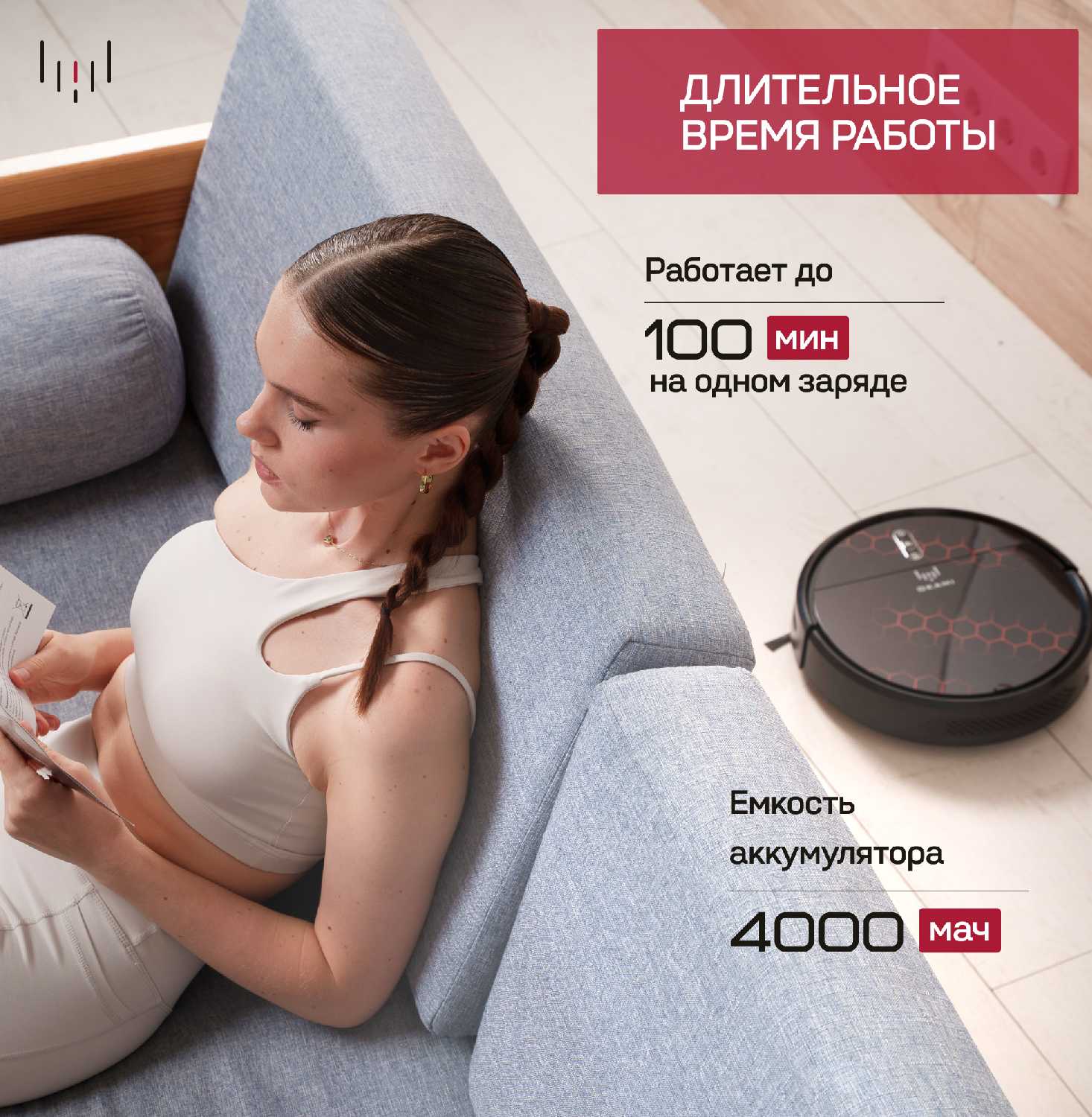 - Низкая высота позволяет проезжать под шкафами, диванами и другой низкой мебелью.
