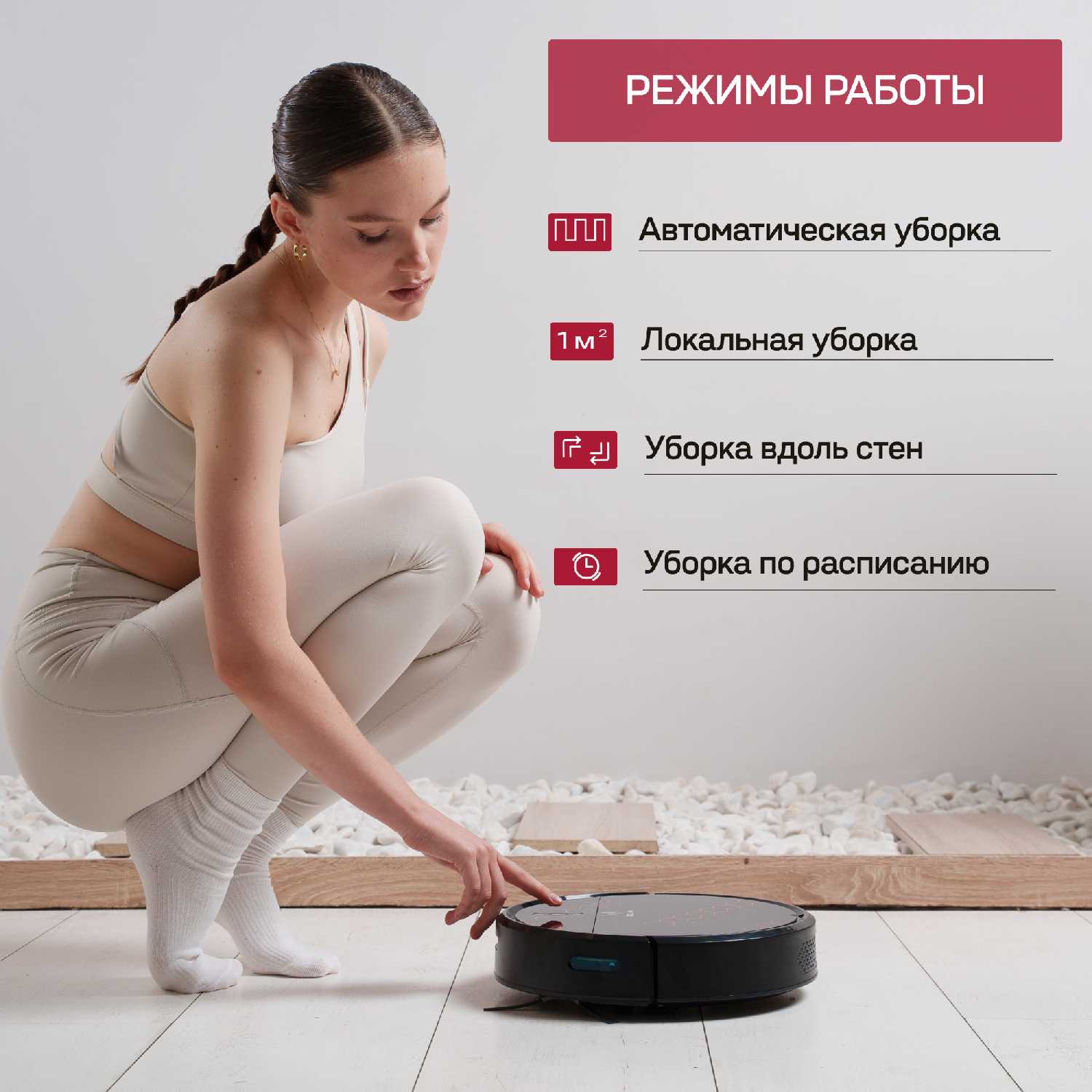 - + Заряда хватает на уборку 70 квадратов