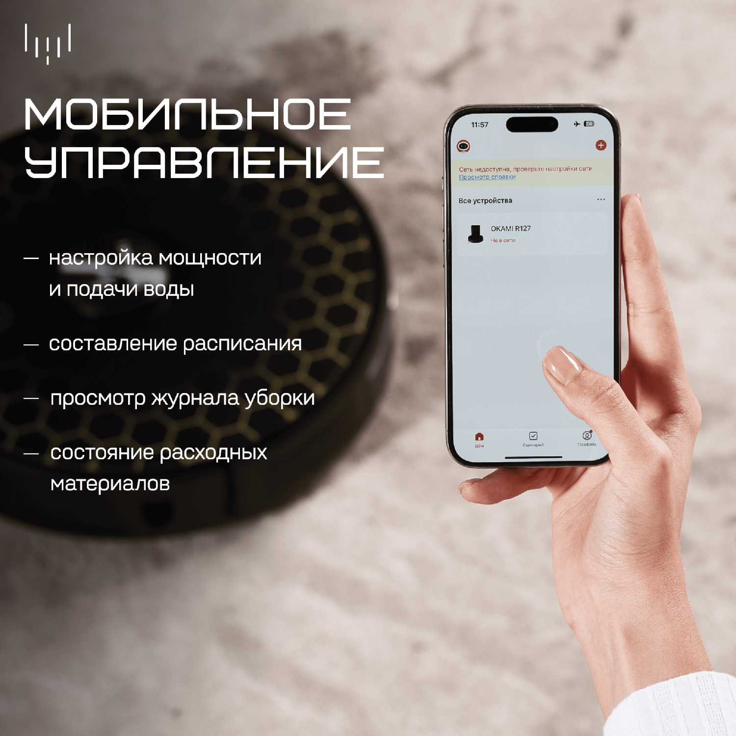 Приложение Okami IQ Home очень удобное и функциональное, с интуитивно понятным интерфейсом на русском языке. Через него можно строить карту комнат, настраивать виртуальные стены, задавать расписание уборок и выбирать зоны для точечной очистки. Хотя есть возможность подключения к голосовым помощникам вроде Алисы, пользователи отмечают, что полное управление удобнее осуществлять именно через приложение. -