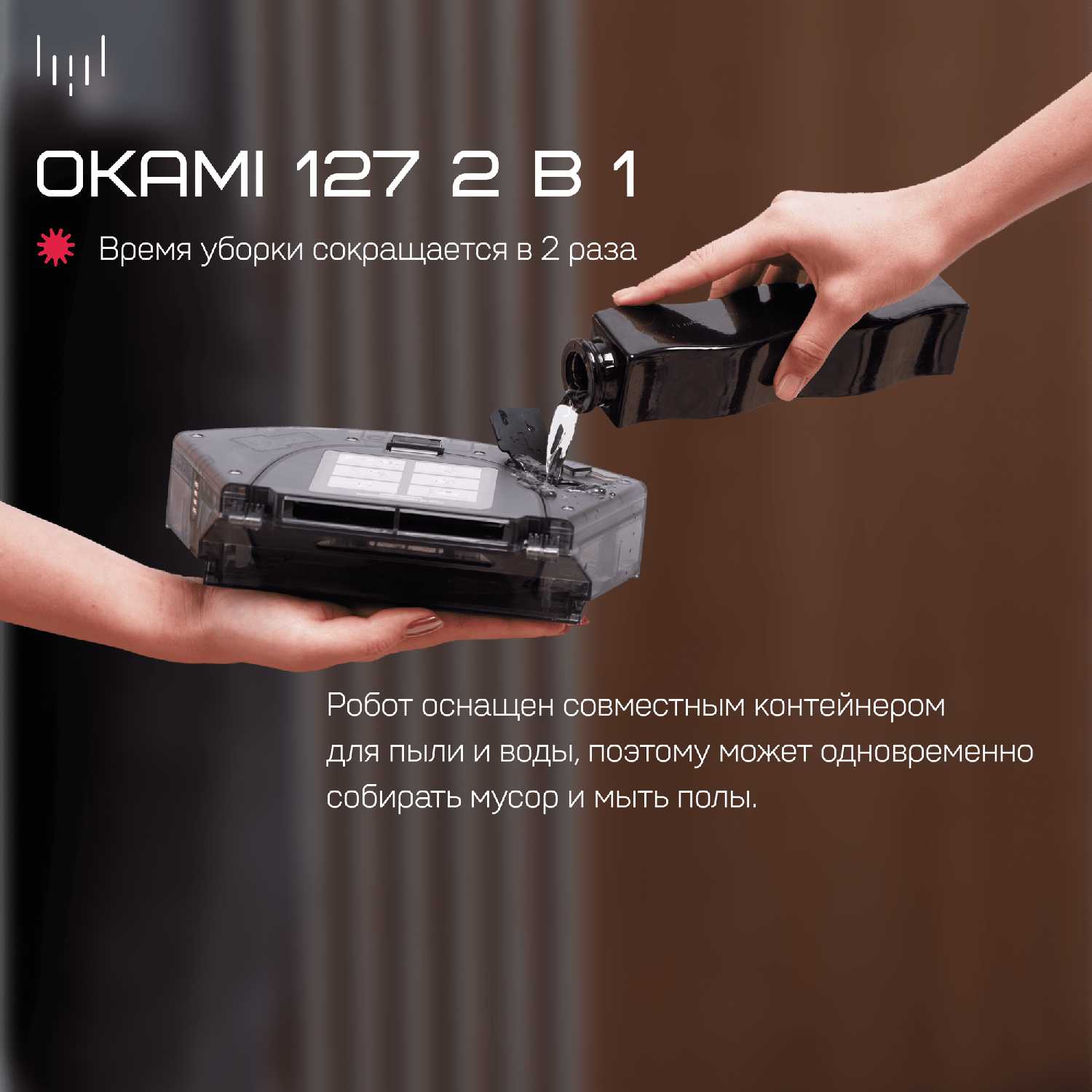 Долго выбирали робот-пылесос среди множества моделей и в итоге остановился на OKAMI R117 и не прогадали! Пылесос приятно удивил своей работой: эффективно собирает пыль, шерсть домашних животных и мелкий мусор, при этом грамотно ориентируется в пространстве благодаря продуманной системе навигации. Приложение Okami IQ Home оказалось интуитивно понятным множество функций и настроек, удобно планировать уборку по расписанию. Радует, что уход за пылесосом не требует особых усилий очистка контейнера и щеток занимает минимум времени. Теперь поддержание чистоты в доме это не хлопоты, а простая рутина, за которую отвечает умный помощник. Рекомендую!