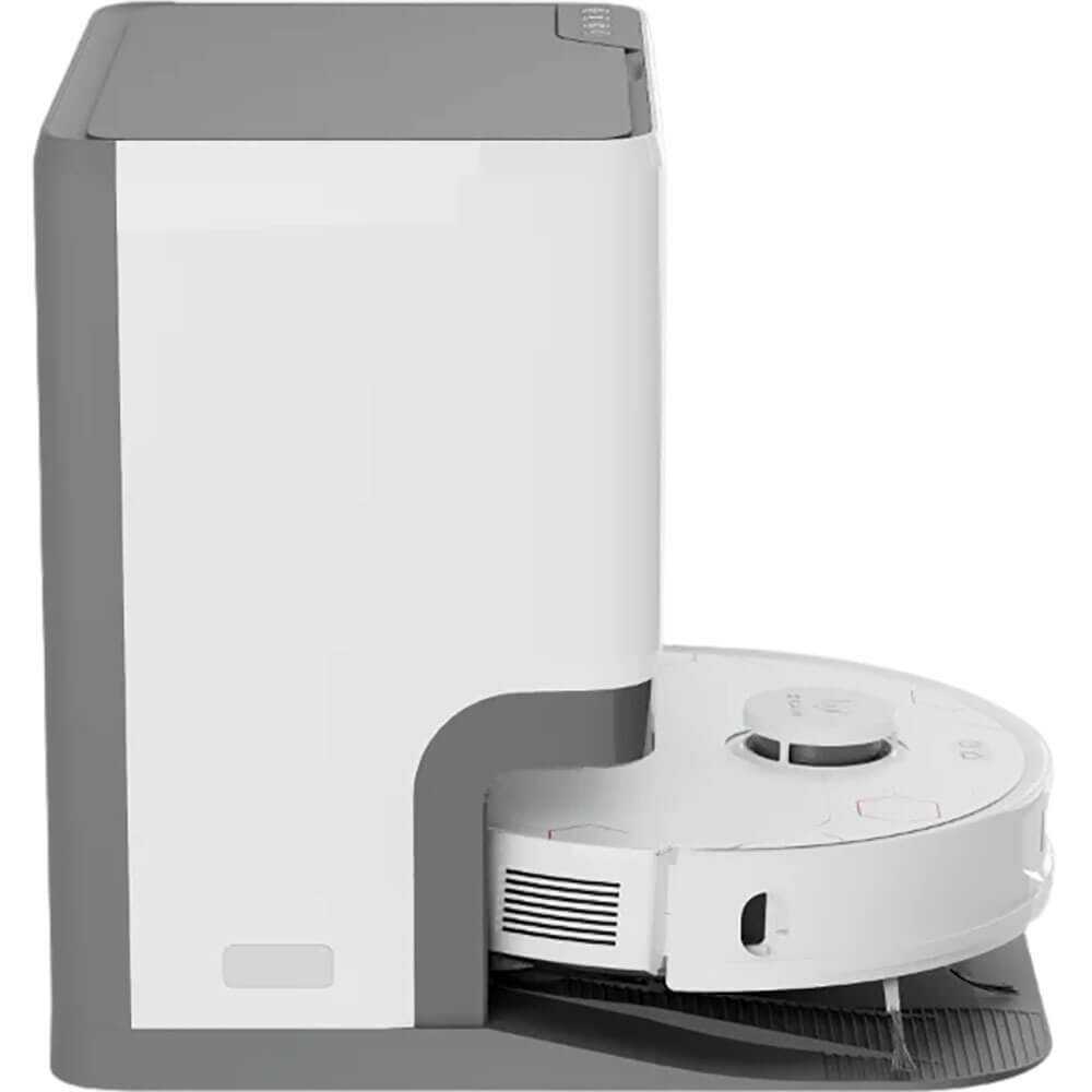 - Станция самостоятельно опустошает пылесборник, моет и сушит мопы, меняет воду, избавляя от ручной возни с грязью.